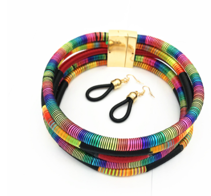Hand-knitted African Style Color Line Magnetic Buckle Necklace