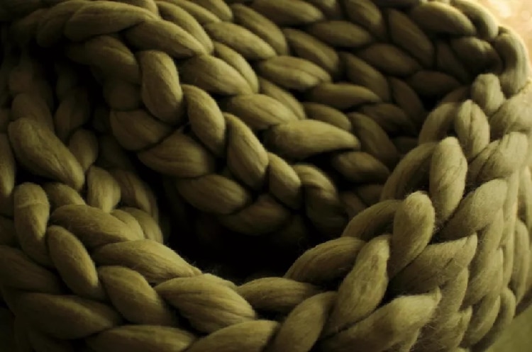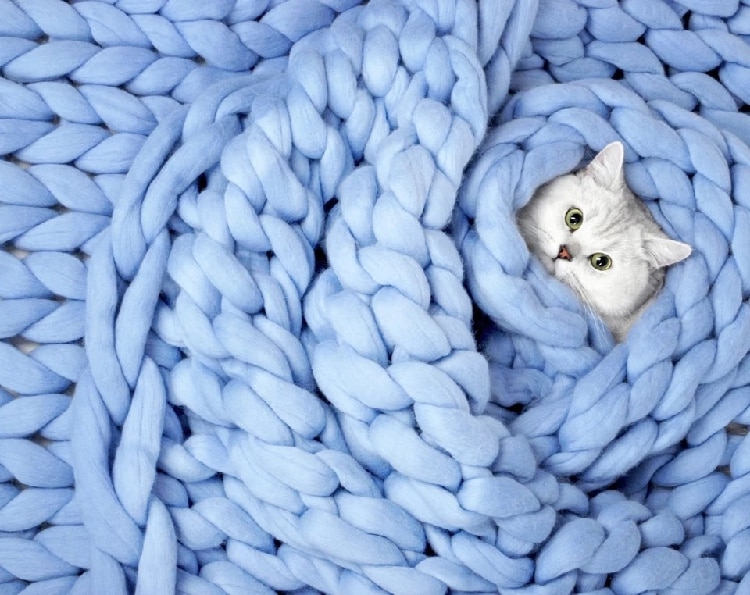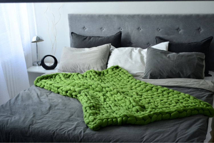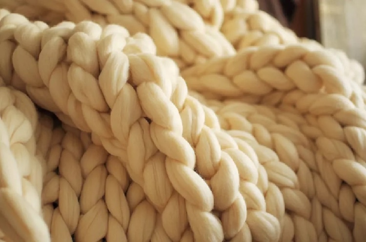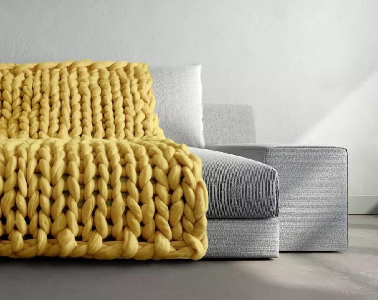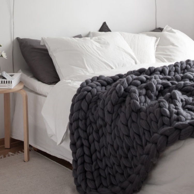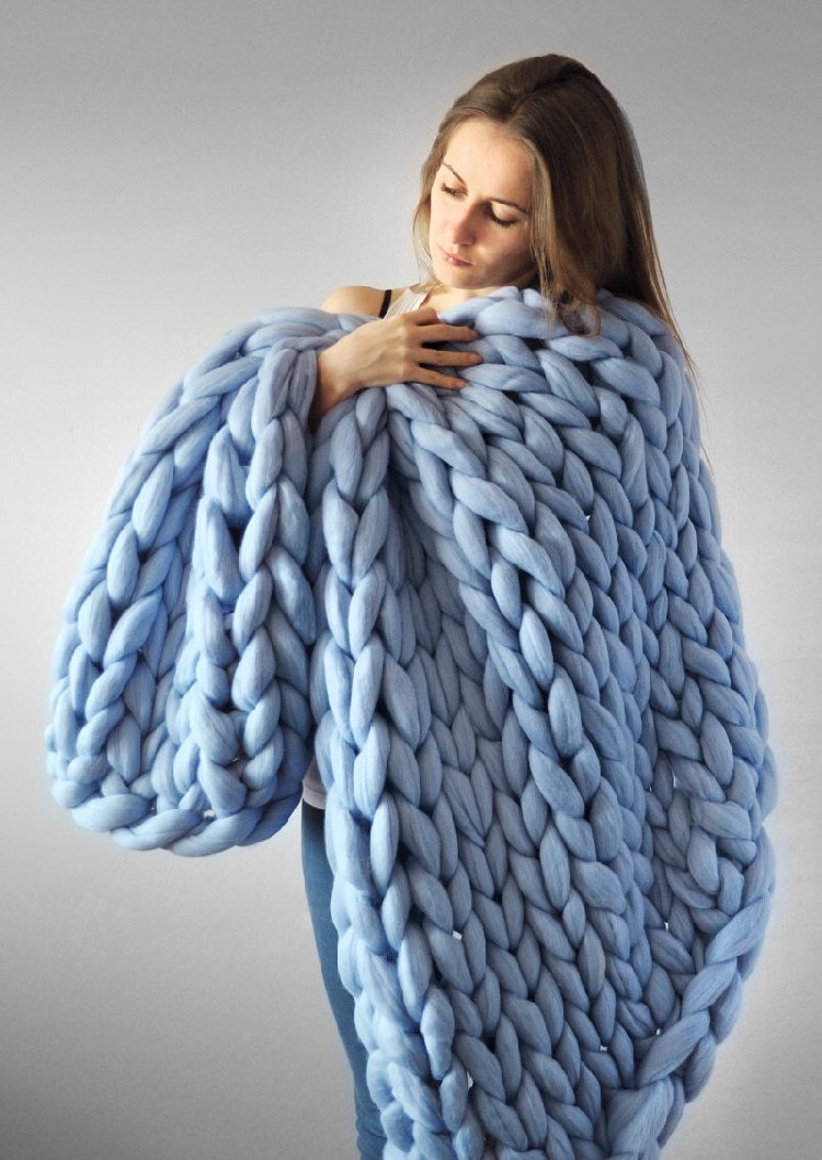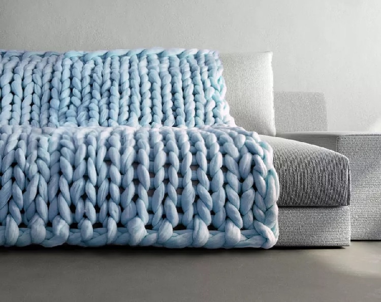 3. The thick knitted blanket with cable stitches is a beautiful home accessory in the living room or bedroom, draped on the sofa or the end of the bed.