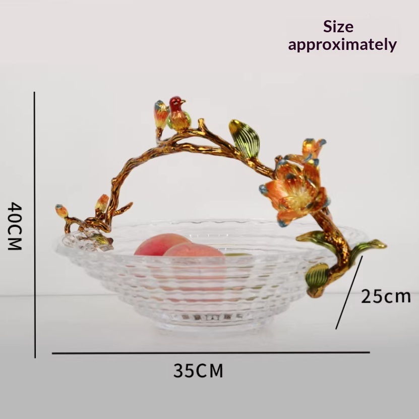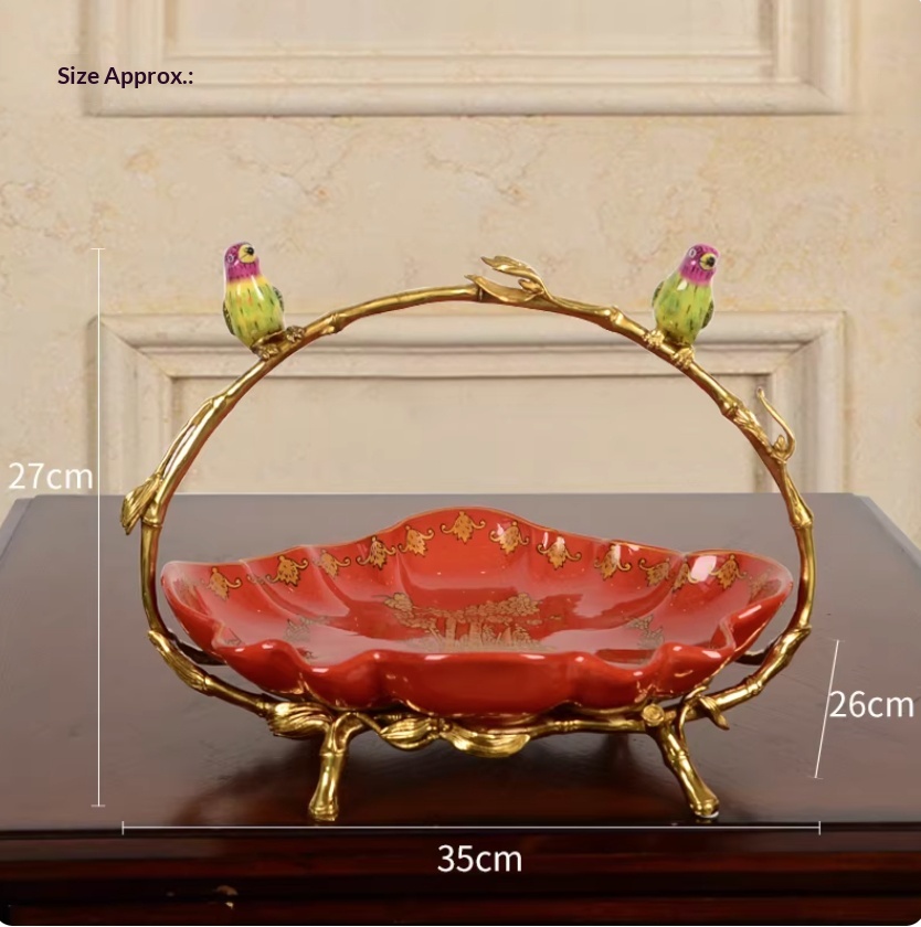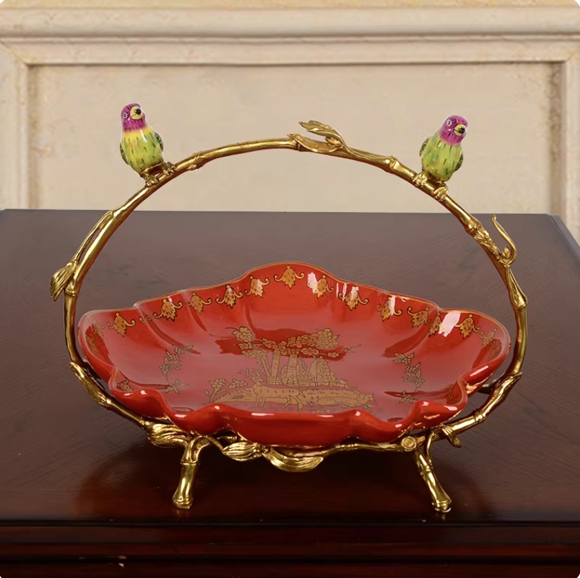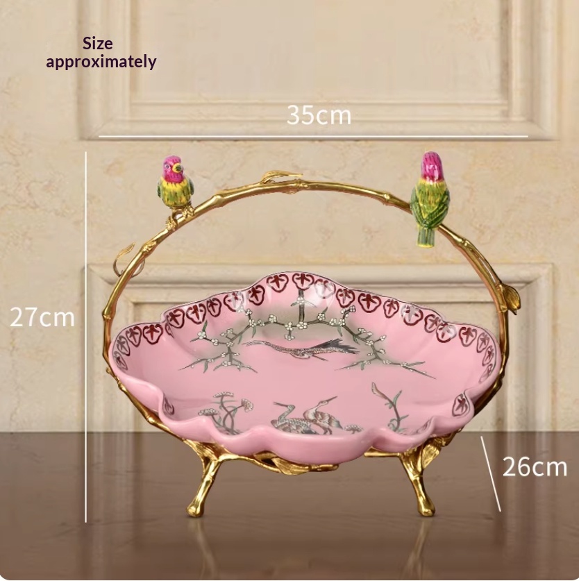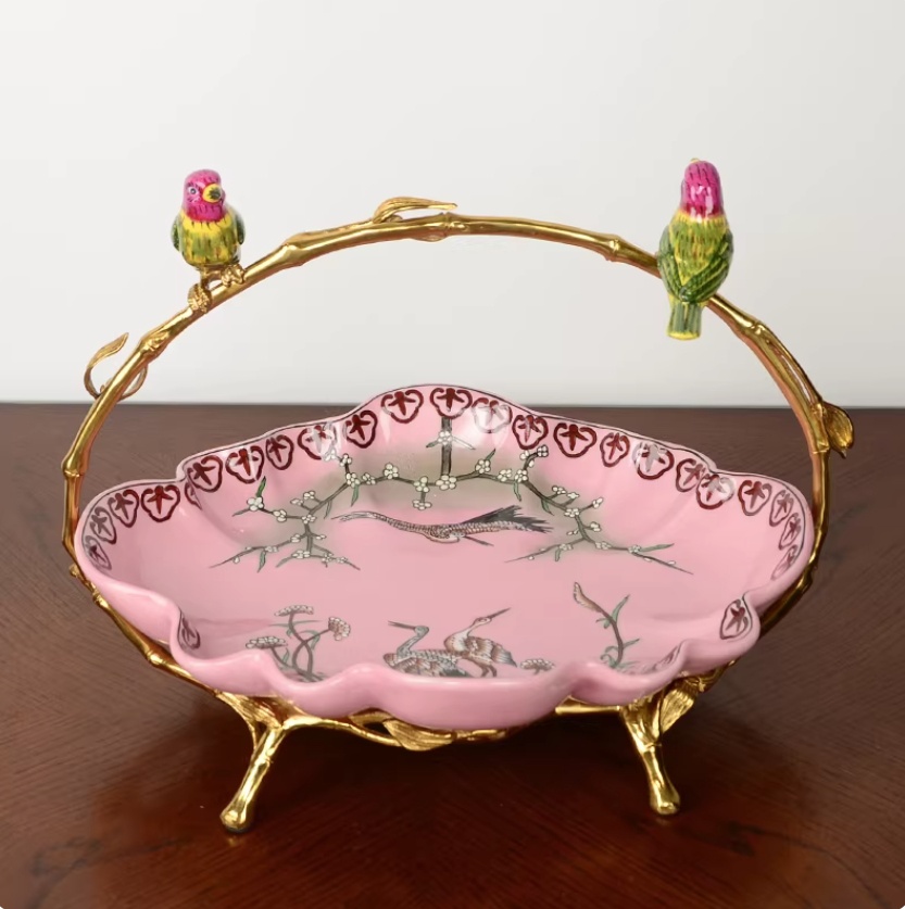 Style: Hand-painted ceramic and solid copper “Flying Together” fruit bowl, hand-painted ceramic and solid copper crane-and-magpie fruit bowl, 5311 enamel-color “Joy Above the Eyebrows” fruit bowl