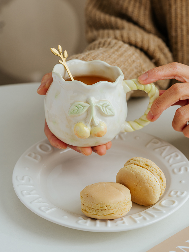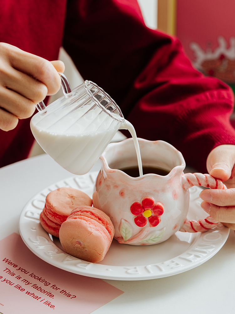 Hand Painted Embossed Flower Ceramic Mug