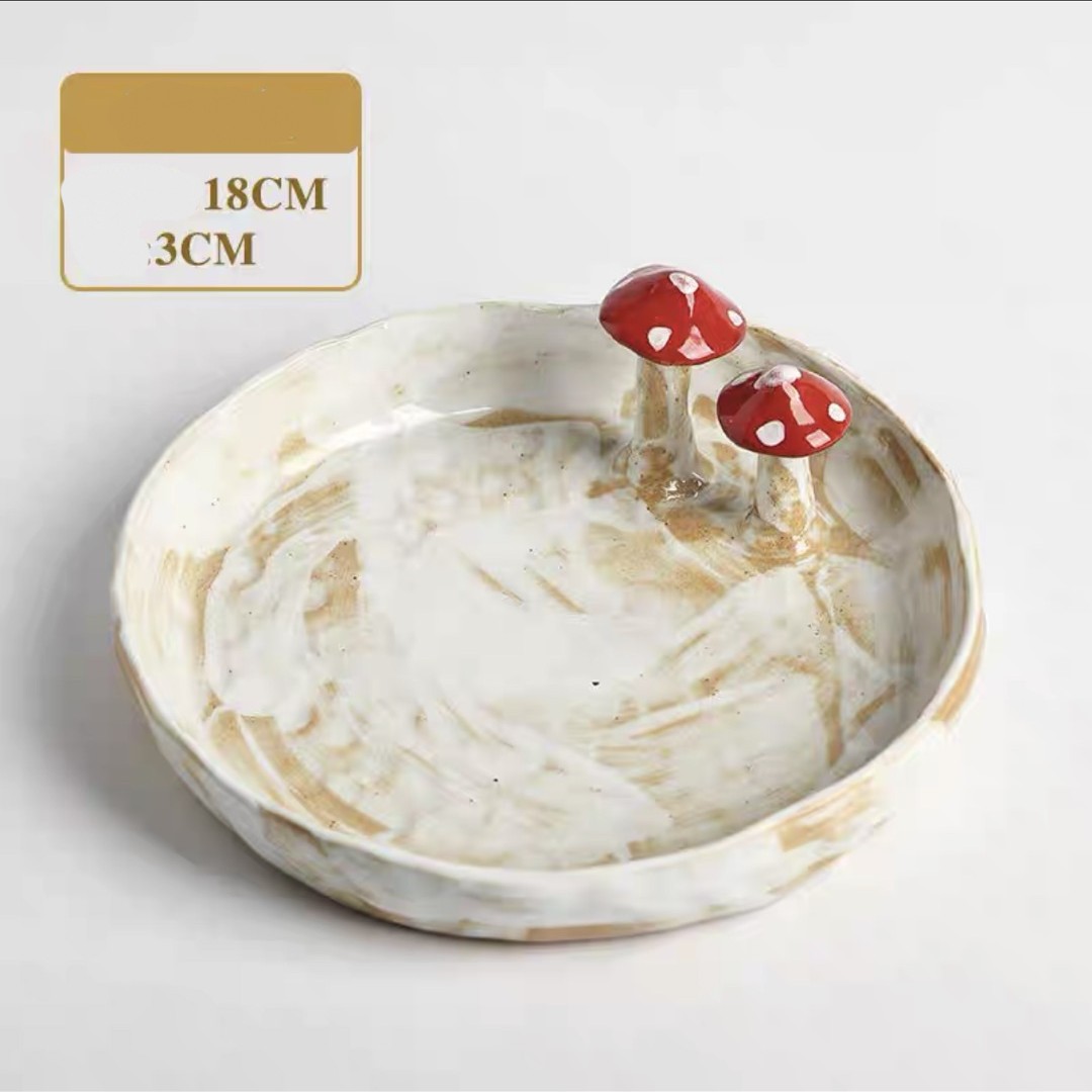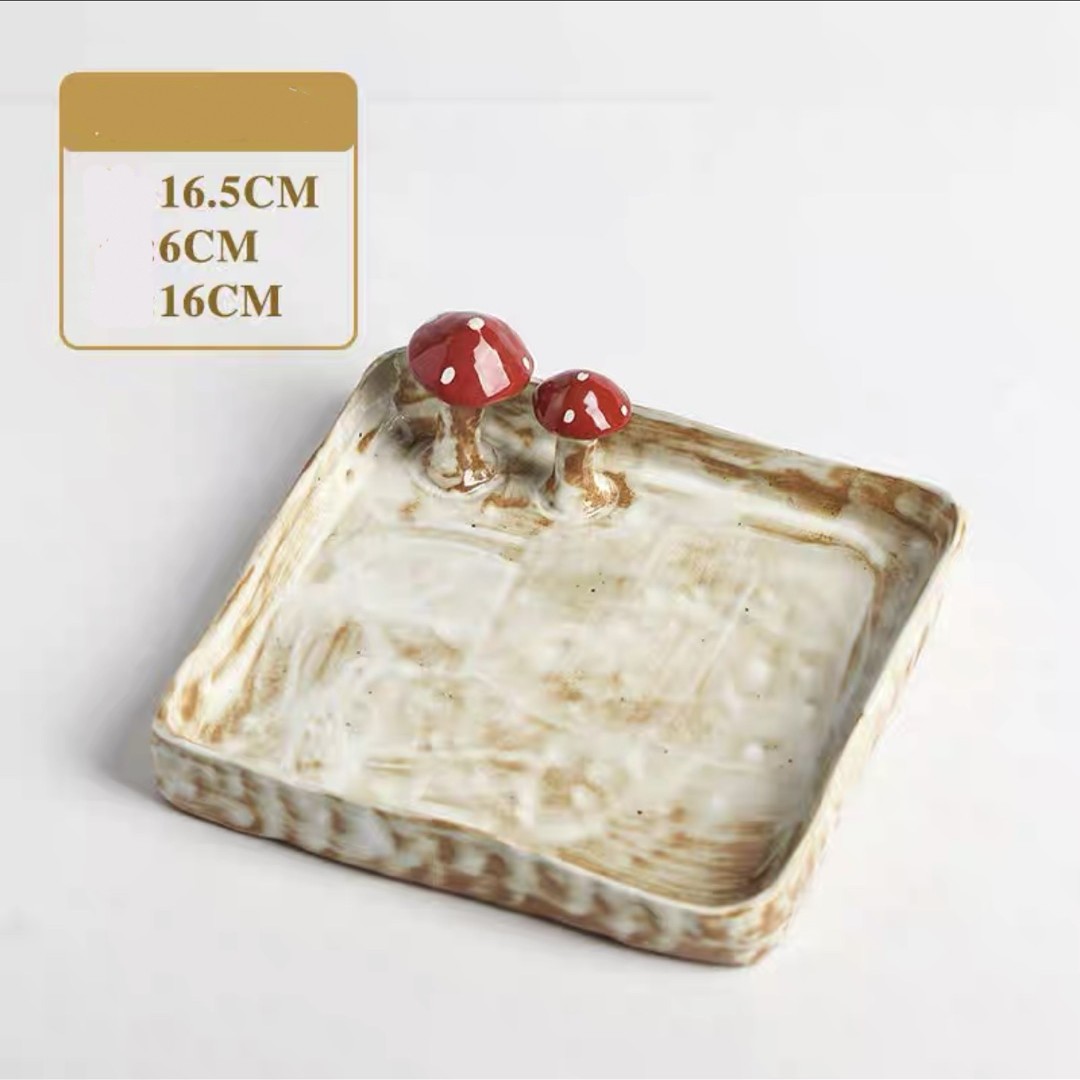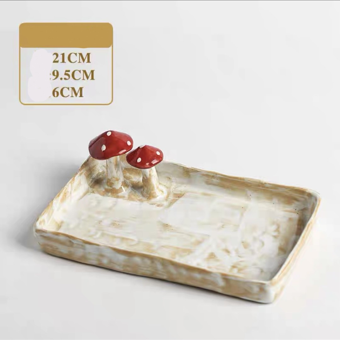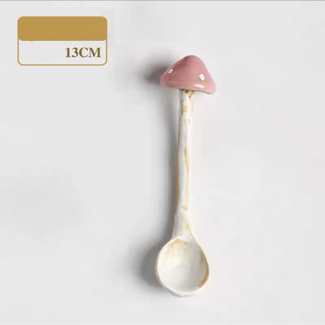 Color categories: Red handle mushroom cup, cup mouth red mushroom cup, pink mushroom cup, pink mushroom spoon, yellow mushroom spoon, mushroom disk red, mushroom disk pink, mushroom square plate red, mushroom long plate red, red mushroom spoon