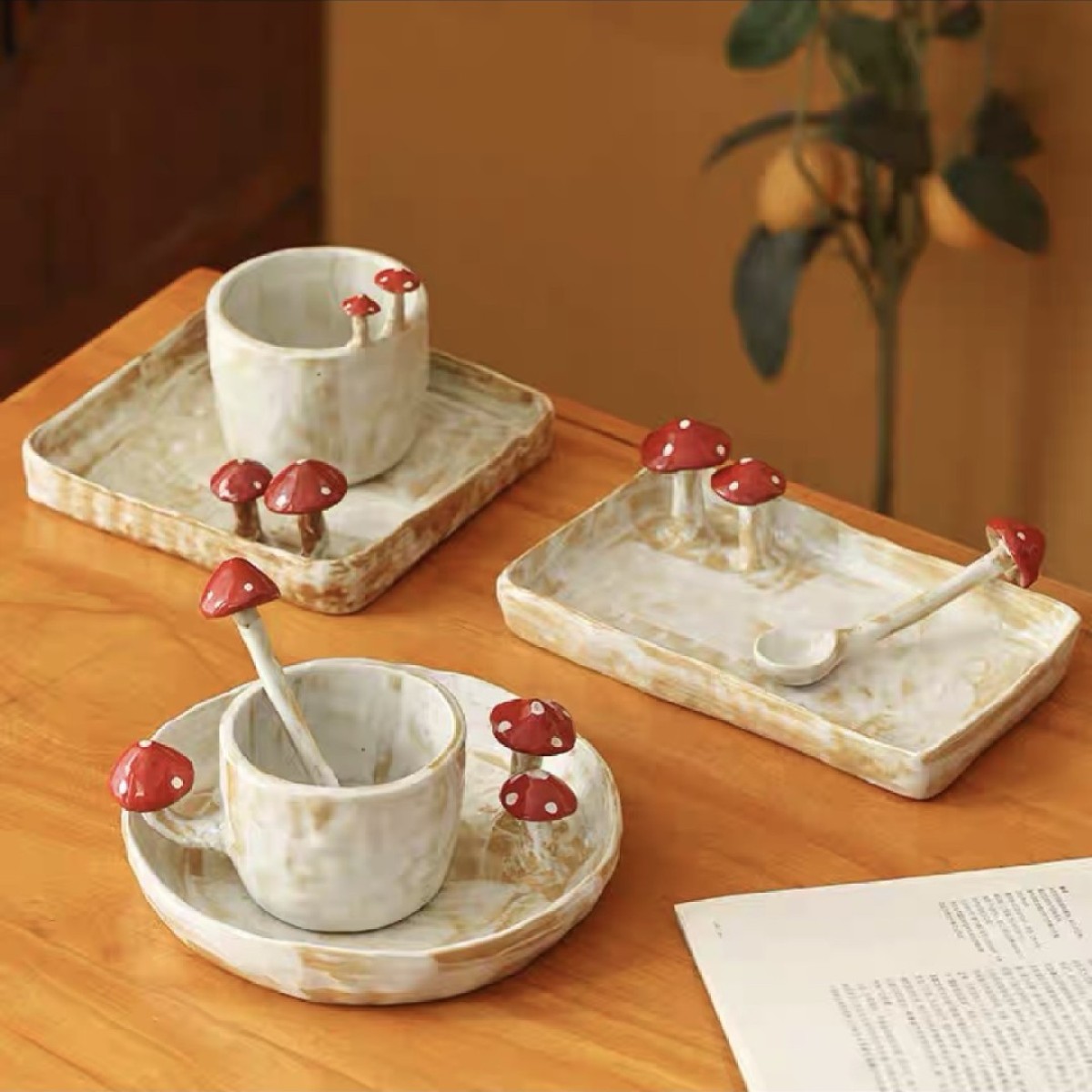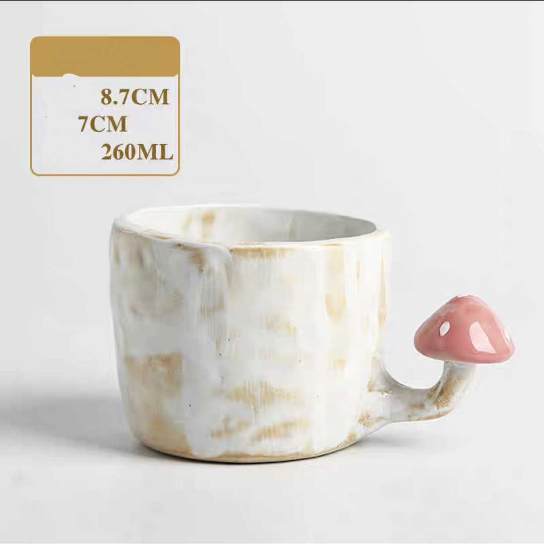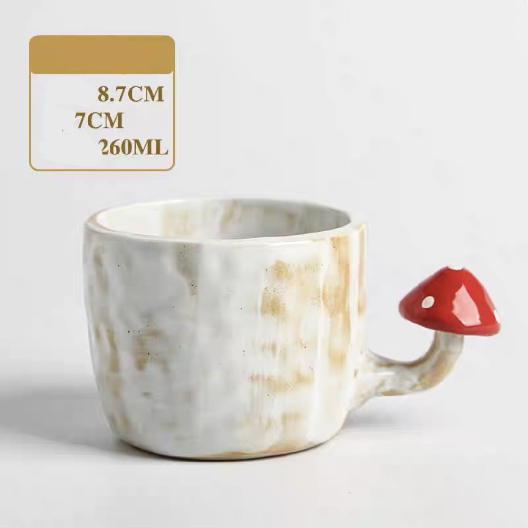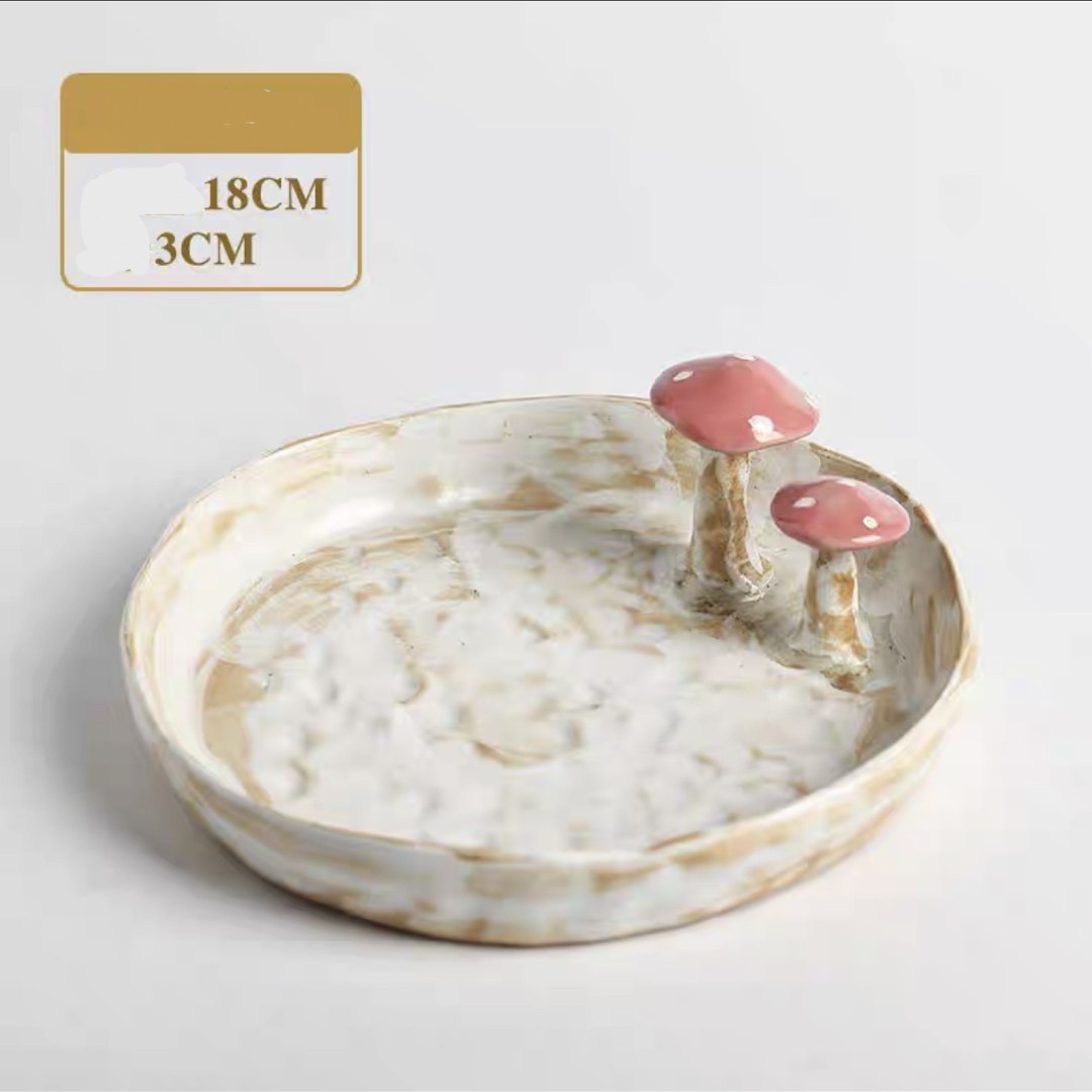 Color categories: Red handle mushroom cup, cup mouth red mushroom cup, pink mushroom cup, pink mushroom spoon, yellow mushroom spoon, mushroom disk red, mushroom disk pink, mushroom square plate red, mushroom long plate red, red mushroom spoon
