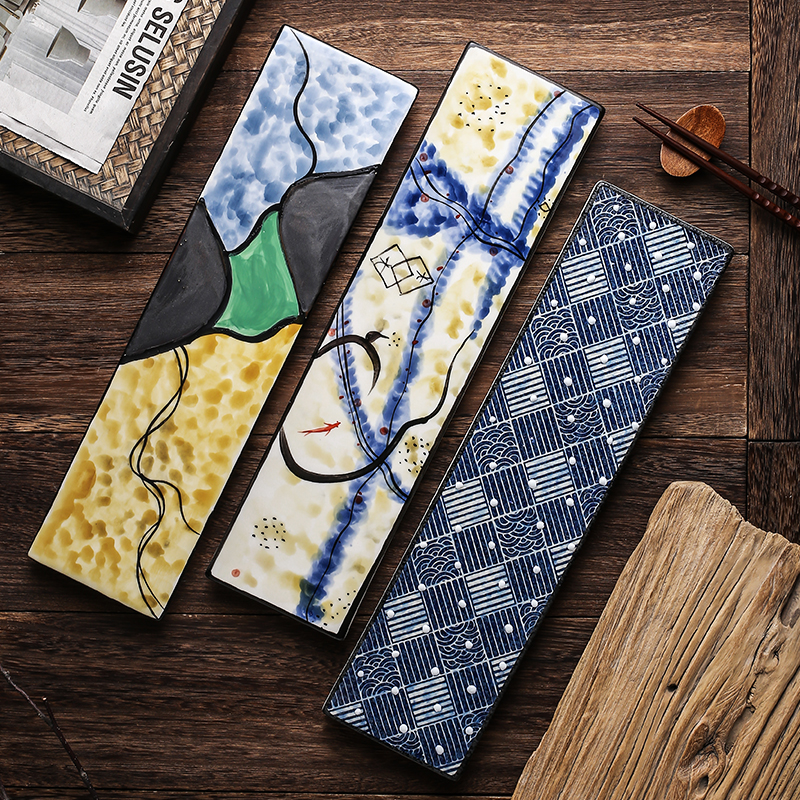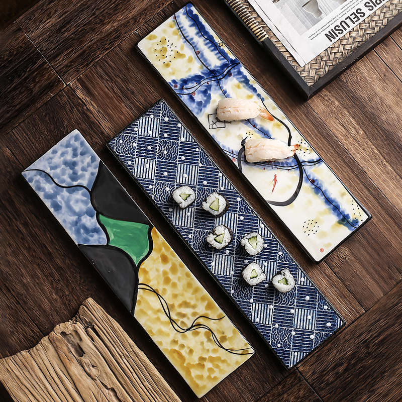 Color classification: 16-inch sushi long plate-Yihe painting, 16-inch sushi long plate-hand painted corrugated, 16-inch sushi long plate-hand painted landscape painting