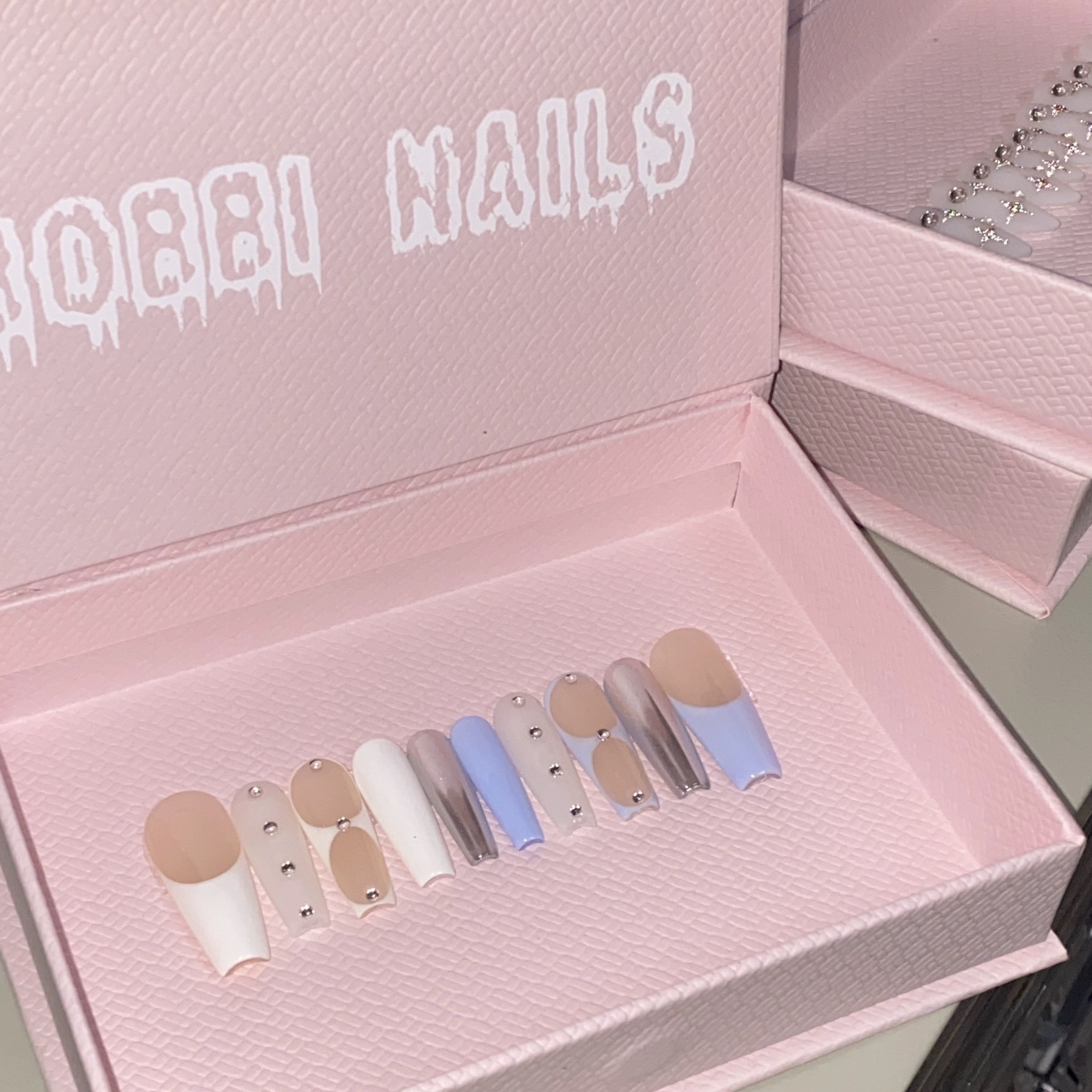 Nail patches * 10pcs+glue * 1+jelly glue * 1 patch+alcohol cotton * 1+rubbing strip * 1