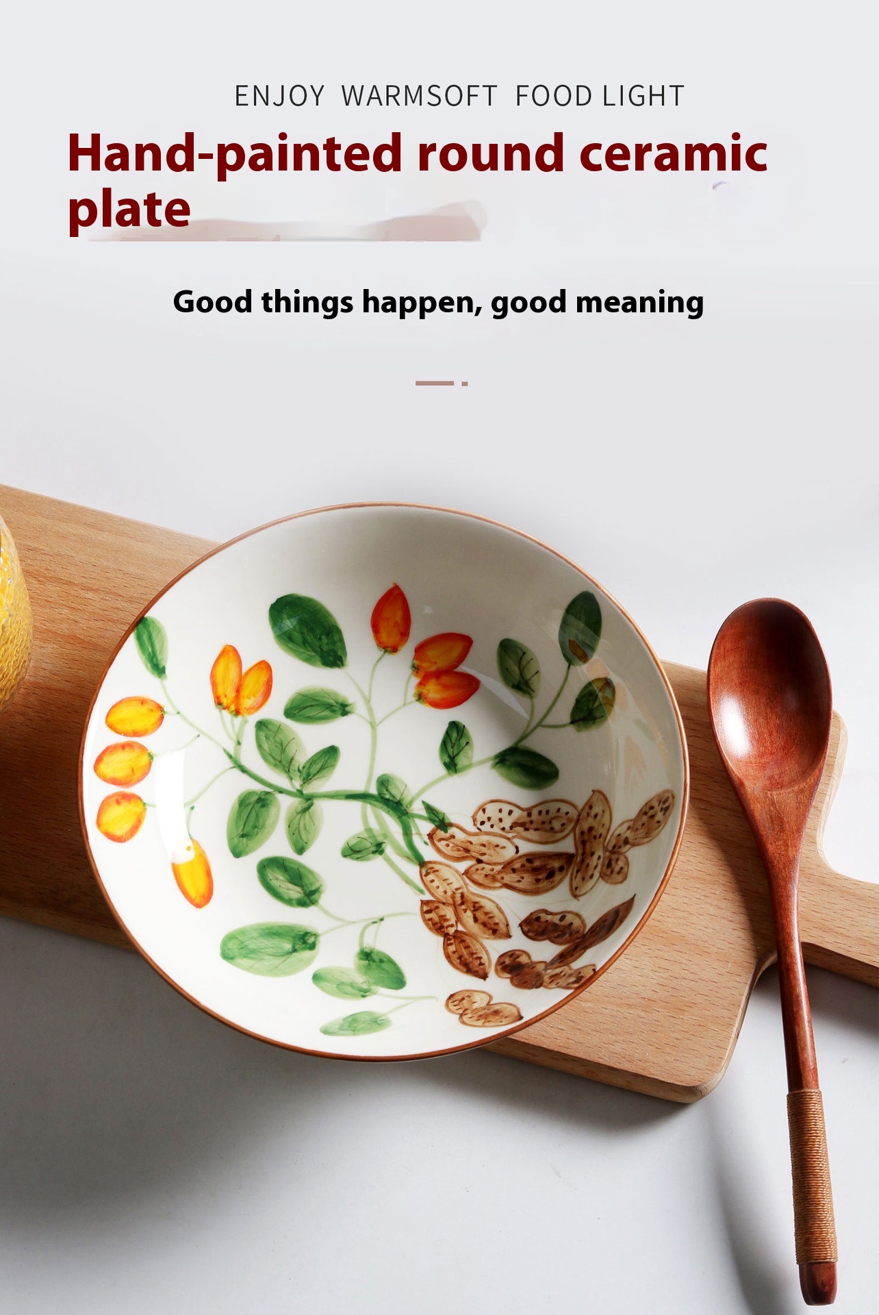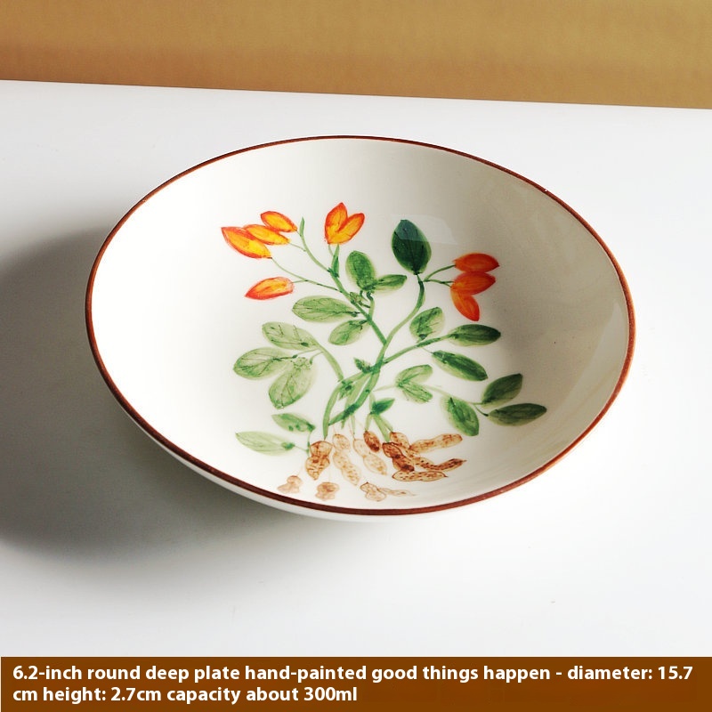 Color: 7.6-inch round plate hand-painted good things happen, 6.2-inch round plate hand-painted good things happen
