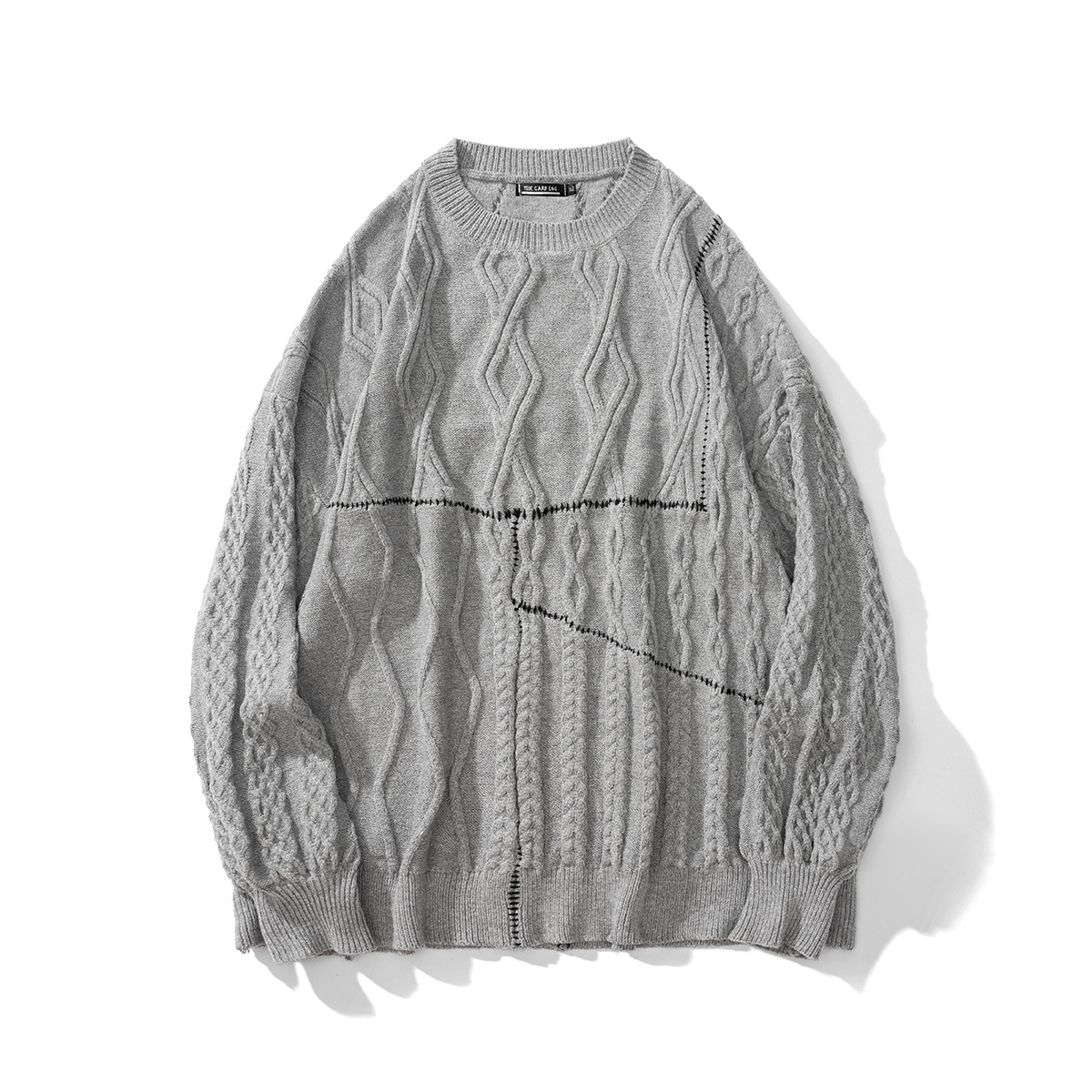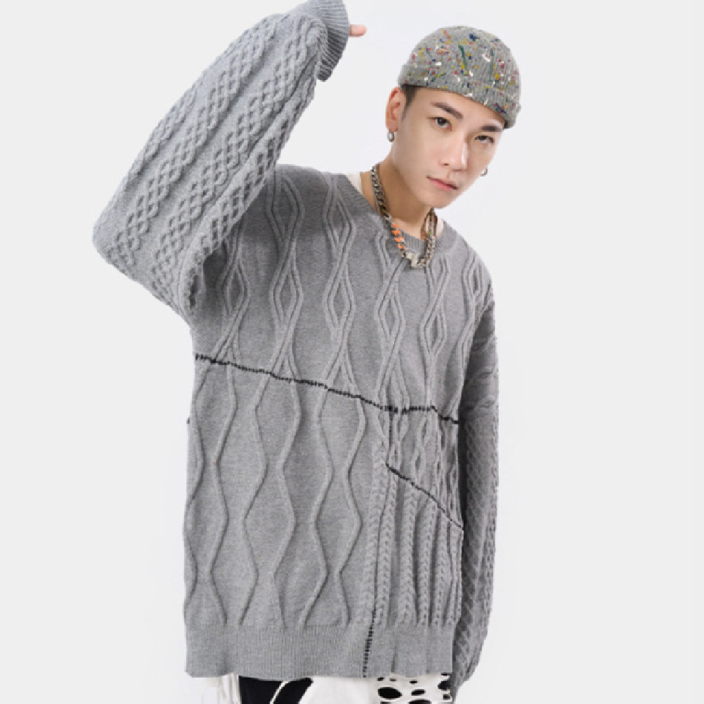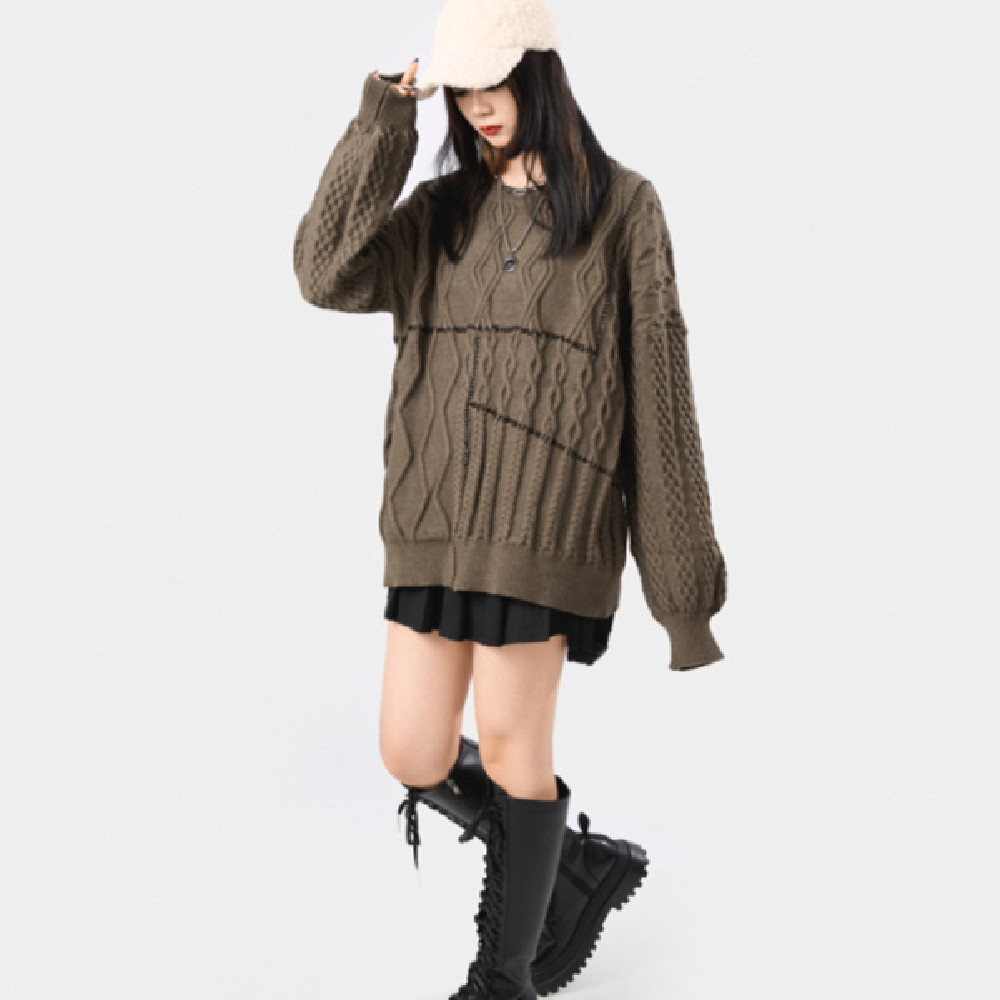 Hand Sewn Mixed Knitting Round Neck Pullover Loose Knit