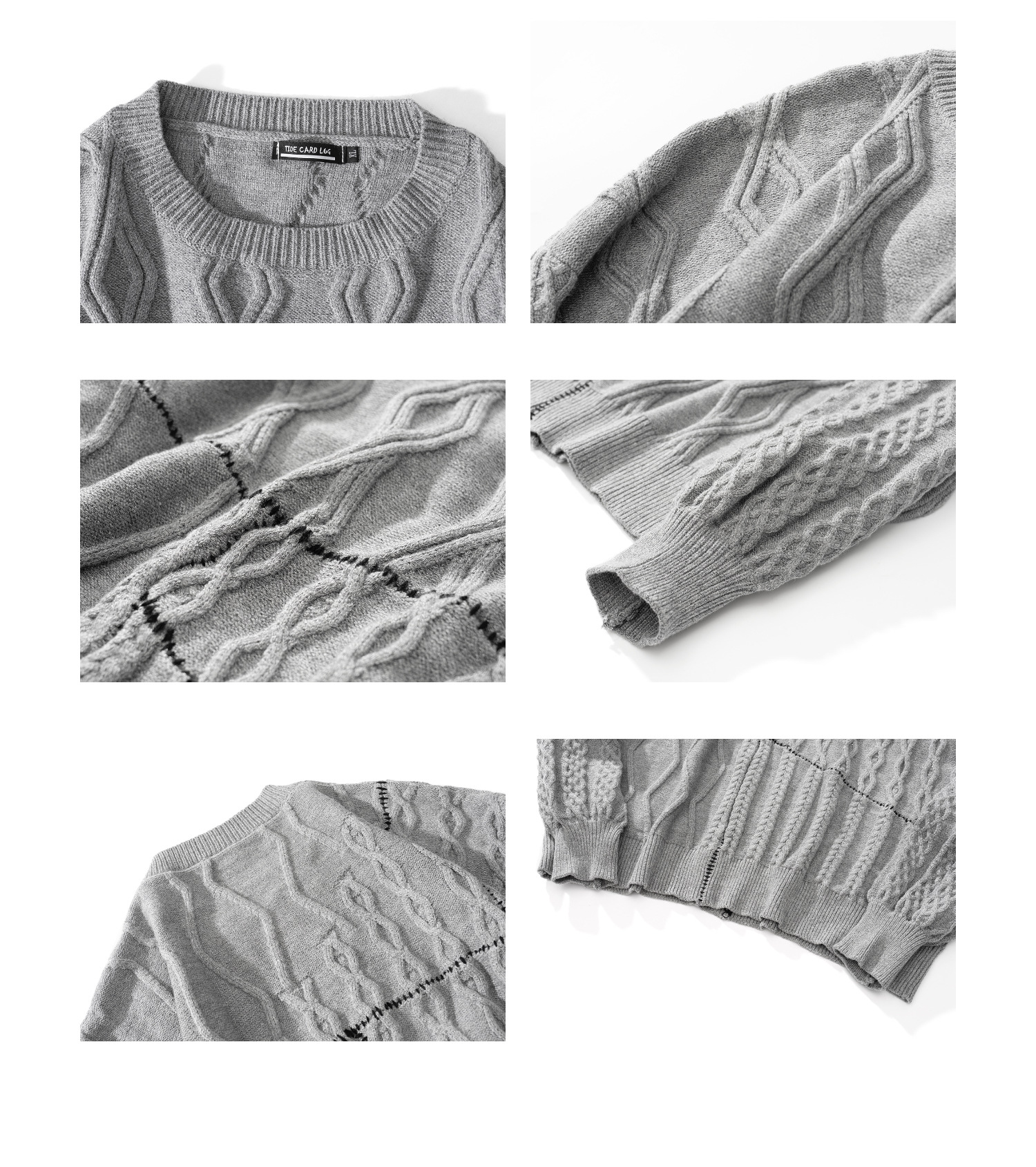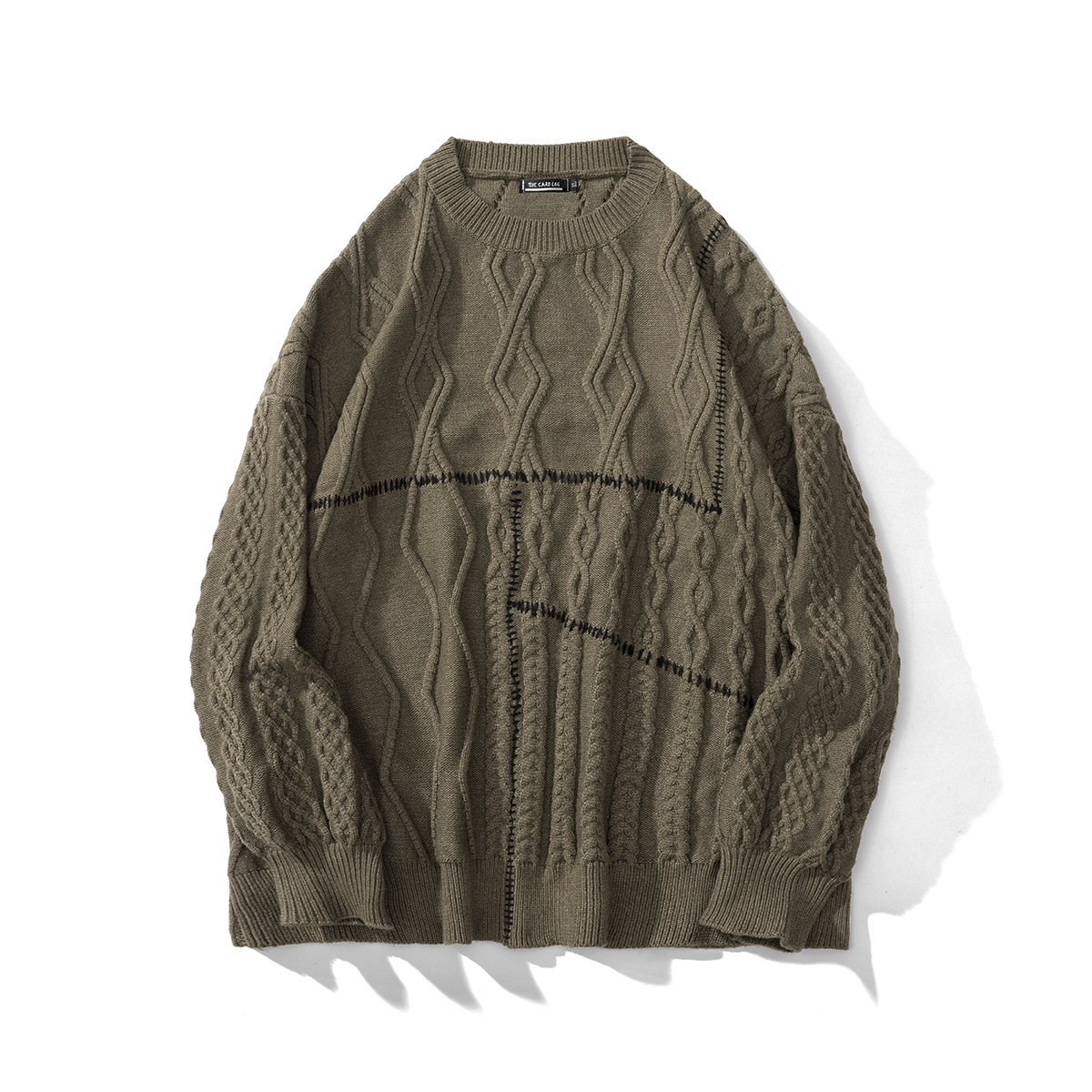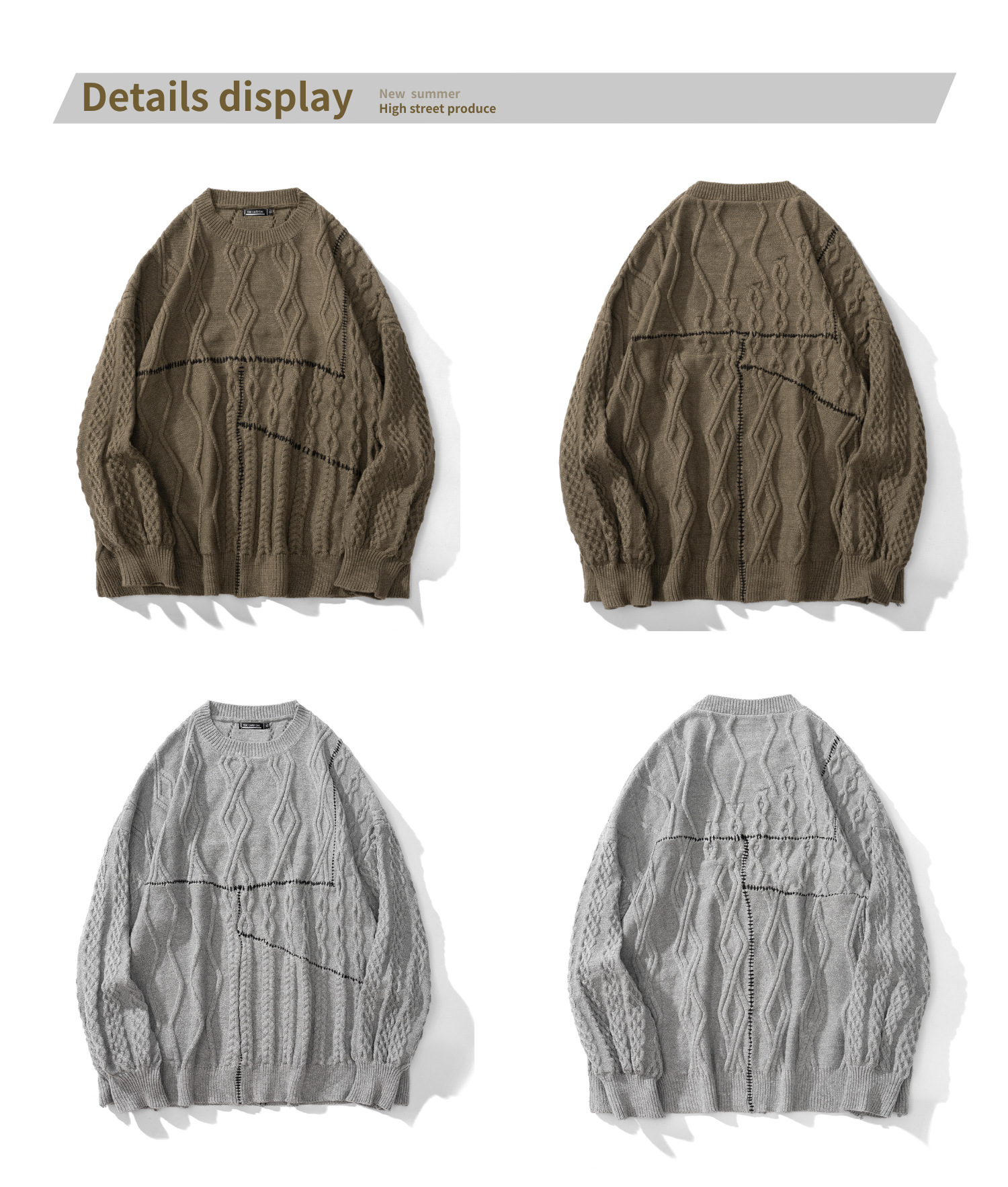 Hand Sewn Mixed Knitting Round Neck Pullover Loose Knit