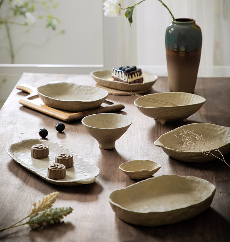 Color: Hand squeezed saucer, hand squeezed high-footed rice bowl, hand squeezed dinner plate small, hand squeezed dinner plate medium, hand squeezed dinner plate large, hand squeezed round deep plate, hand squeezed binaural dinner plate, hand Pinch the high-footed dinner plate, pinch the double-eared long plate
