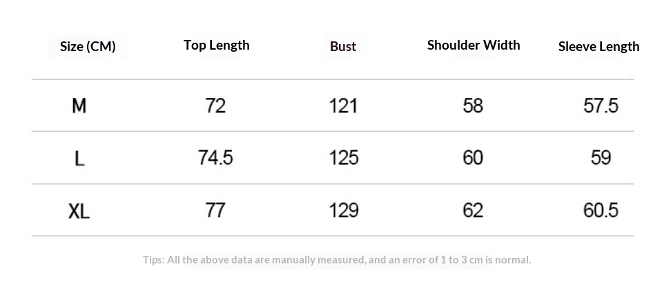 1. Asian sizes are 1 to 2 sizes smaller than European and American people. Choose the larger size if your size between two sizes. Please allow 2-3cm differences due to manual measurement. 2. Please check the size chart carefully before you buy the item, if you don't know how to choose size, please contact our customer service. 3.As you know, the different computers display colors differently, the color of the actual item may vary slightly from the following images.