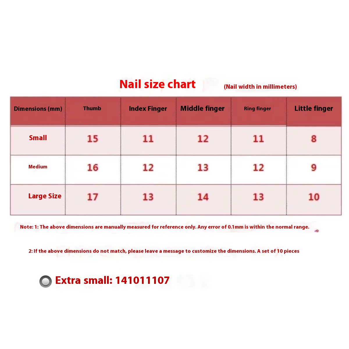 Specifications: ultra-small XS, small S, medium M, large L