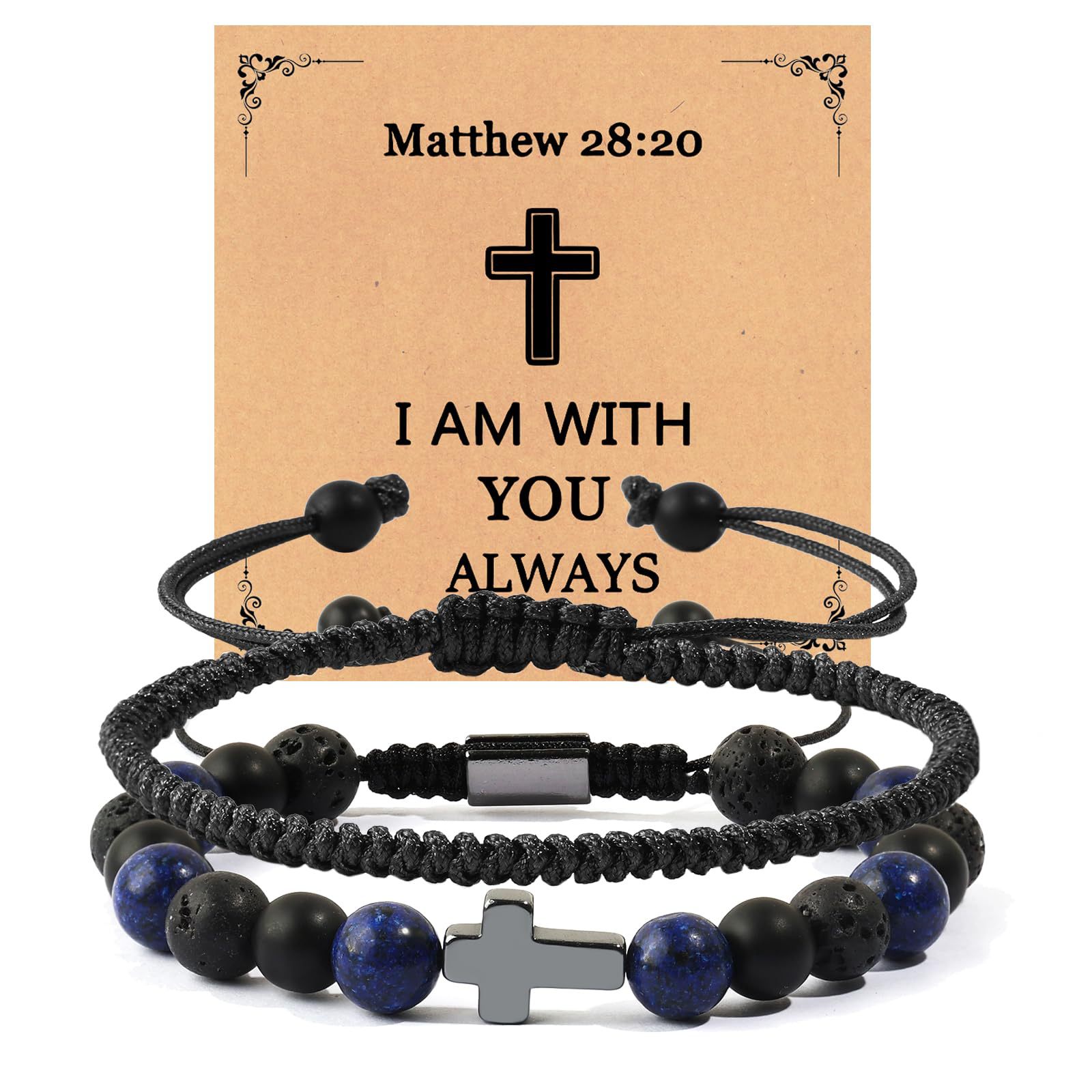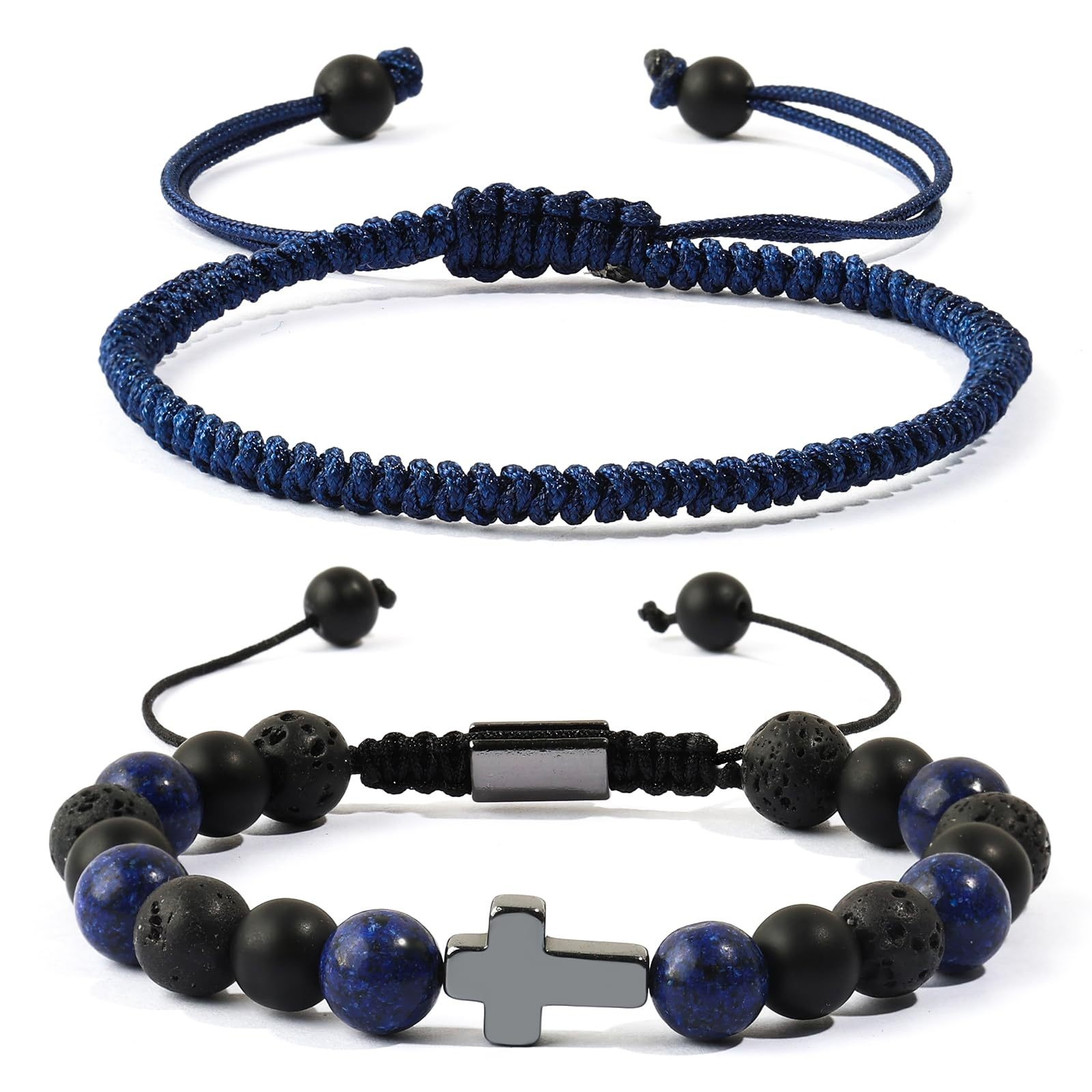 Hand-woven Cross Lapis Lazuli Black Matte Volcanic Stone Beaded Bracelet Set