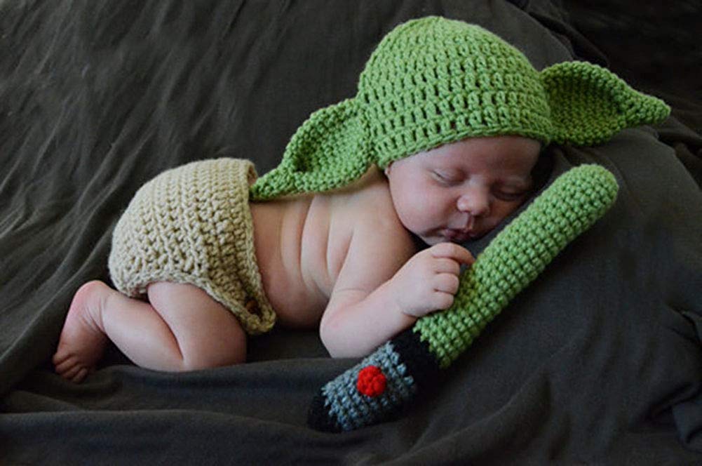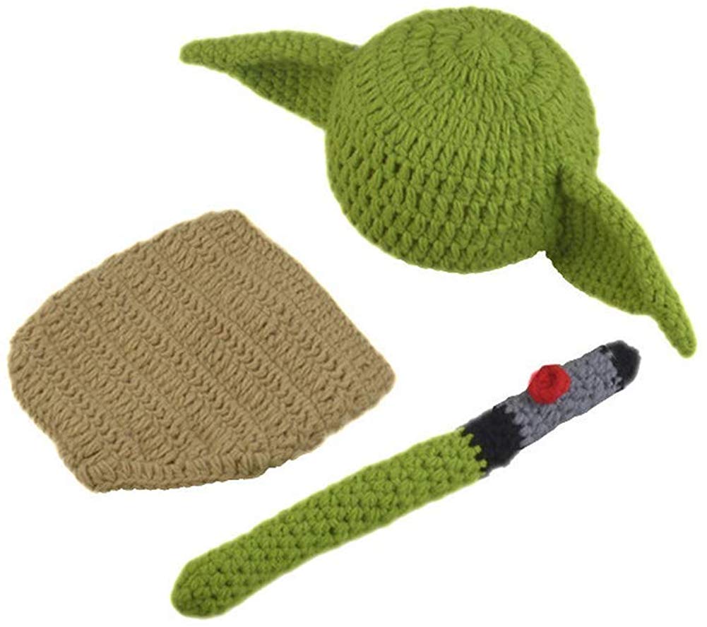 Newborn Photography Props Infant Handmade Costume Cap Cute Green Yoda Grandmaster Knitted Crochet Outfits Clothes Hat for Baby