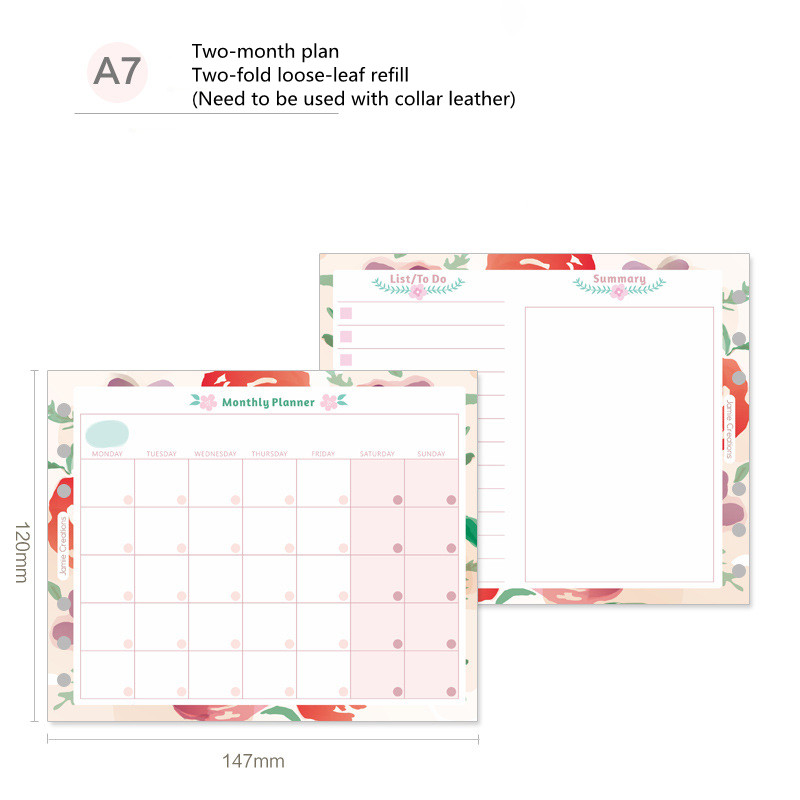 1picture:[A7] -20 large sheets-Floral monthly plan foldout