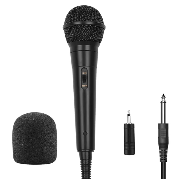 *Robust Compatibility*:This wired microphone comes with a 1/4" jack and includes a 1/4" to 1/8" TS adapter for broader device compatibility. It supports any system with a 1/4" or 1/8" microphone input,such as speakers,karaoke machines,audio amplifiers,PA systems,mixers,and voice amplifiers.