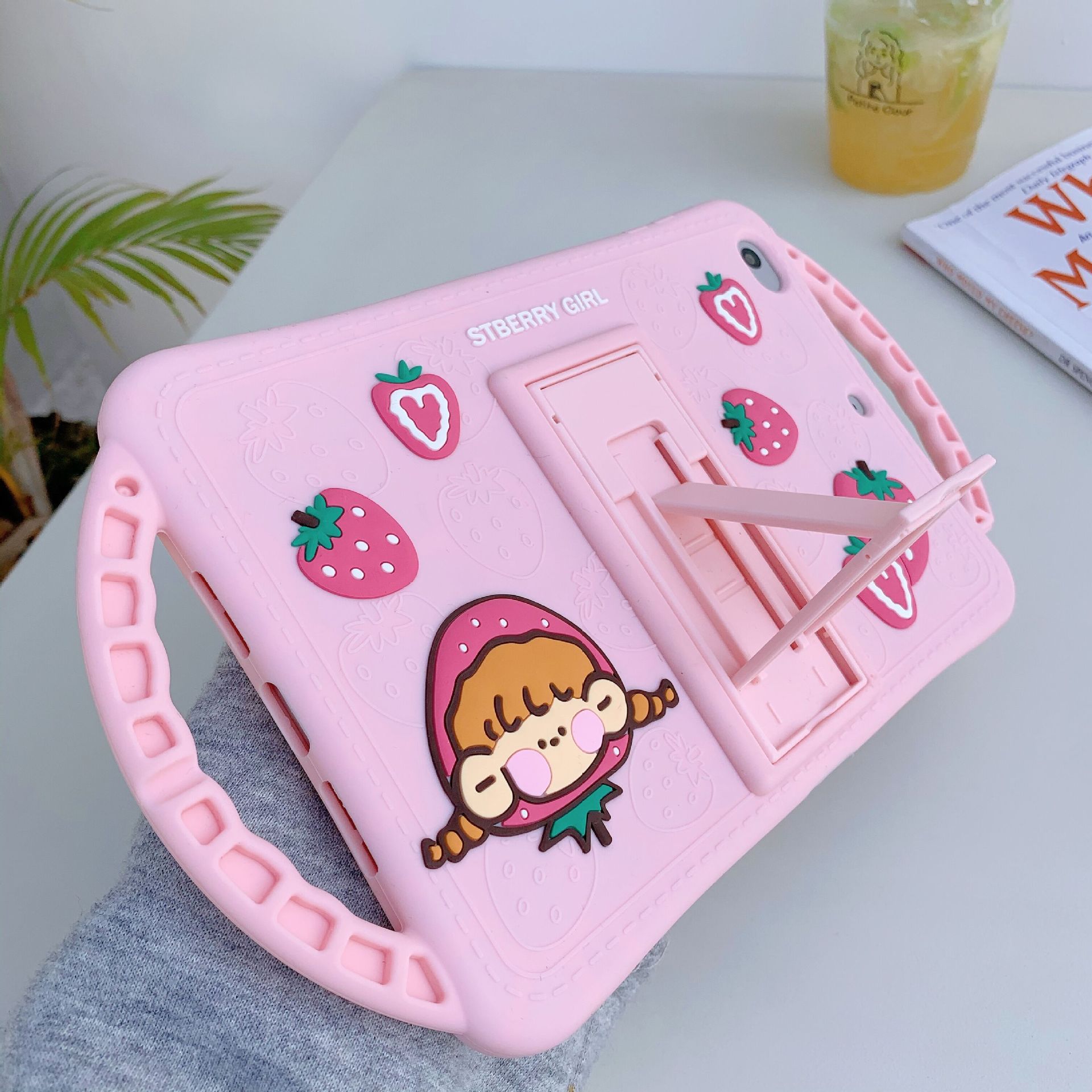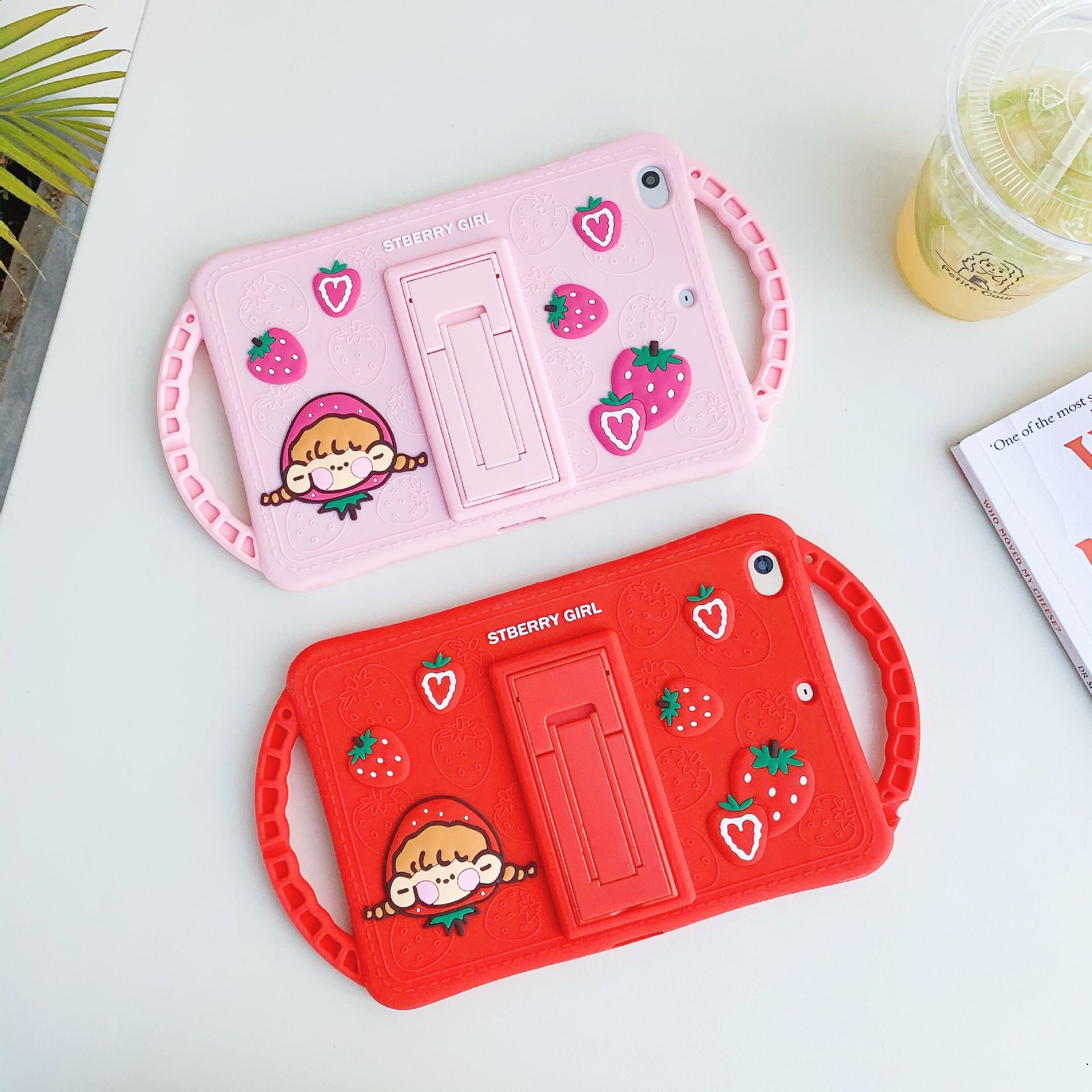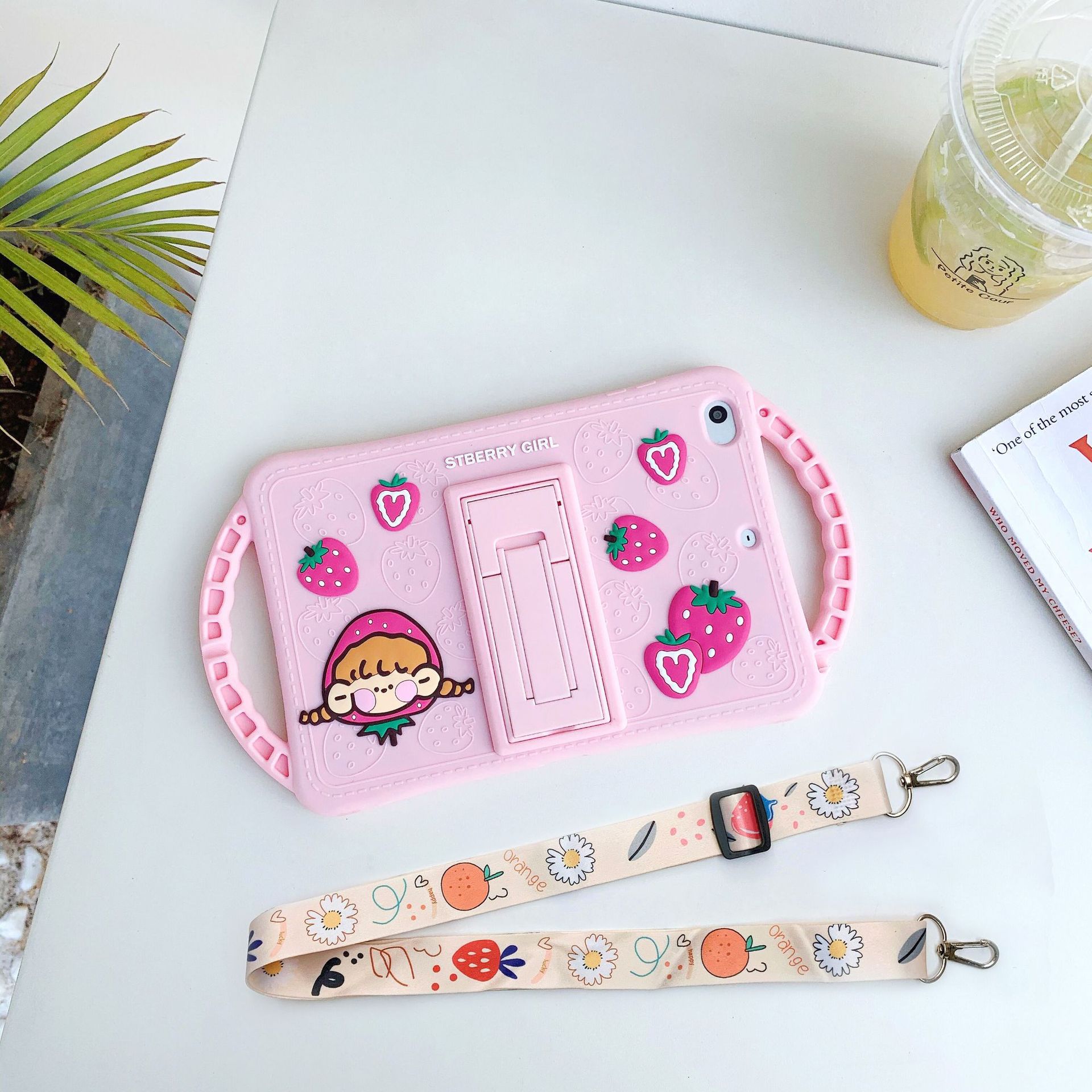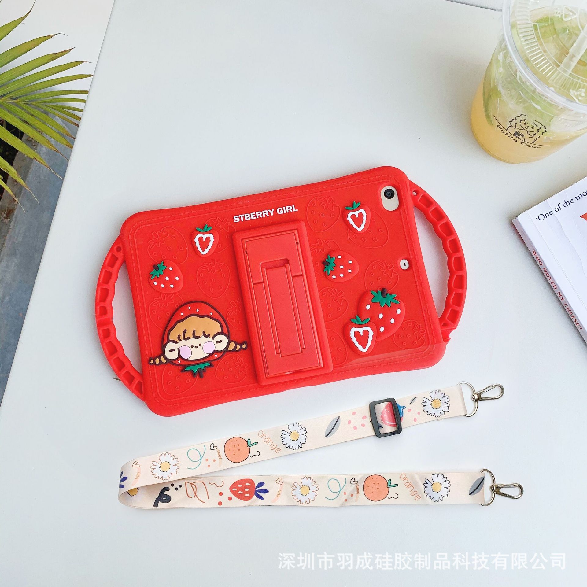 Color: pink handle bracket Strawberry Girl-single shell, red handle bracket Strawberry Girl-single shell, pink handle bracket Strawberry Girl lanyard, red handle bracket Strawberry Girl lanyard