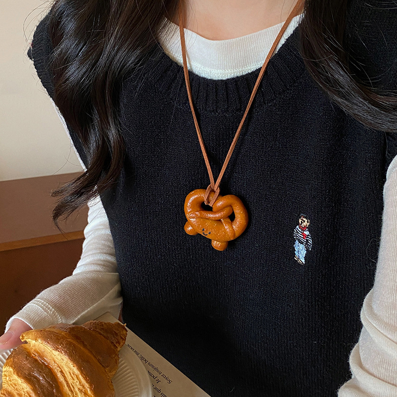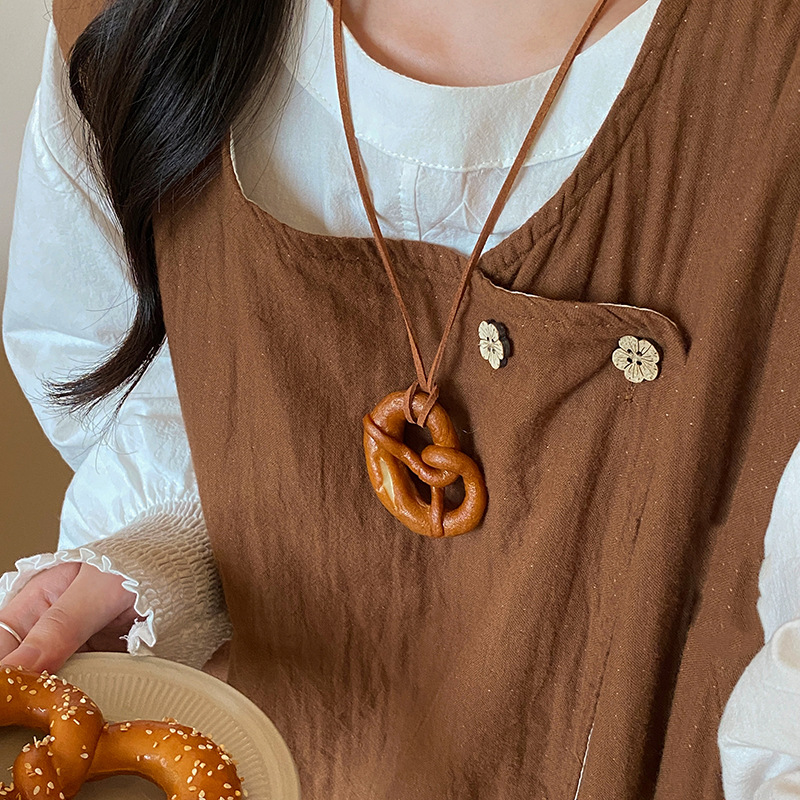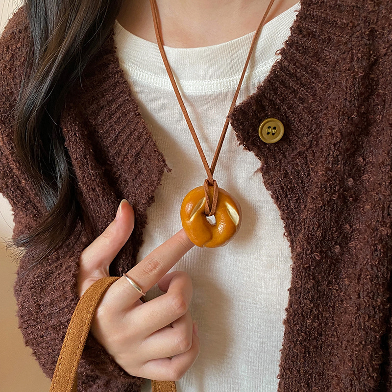 Handmade Alkaline Water Bread Autumn And Winter Necklace Girl Cute Car Bag Pendant Accessories Creative Neck Sweater Chain Woman