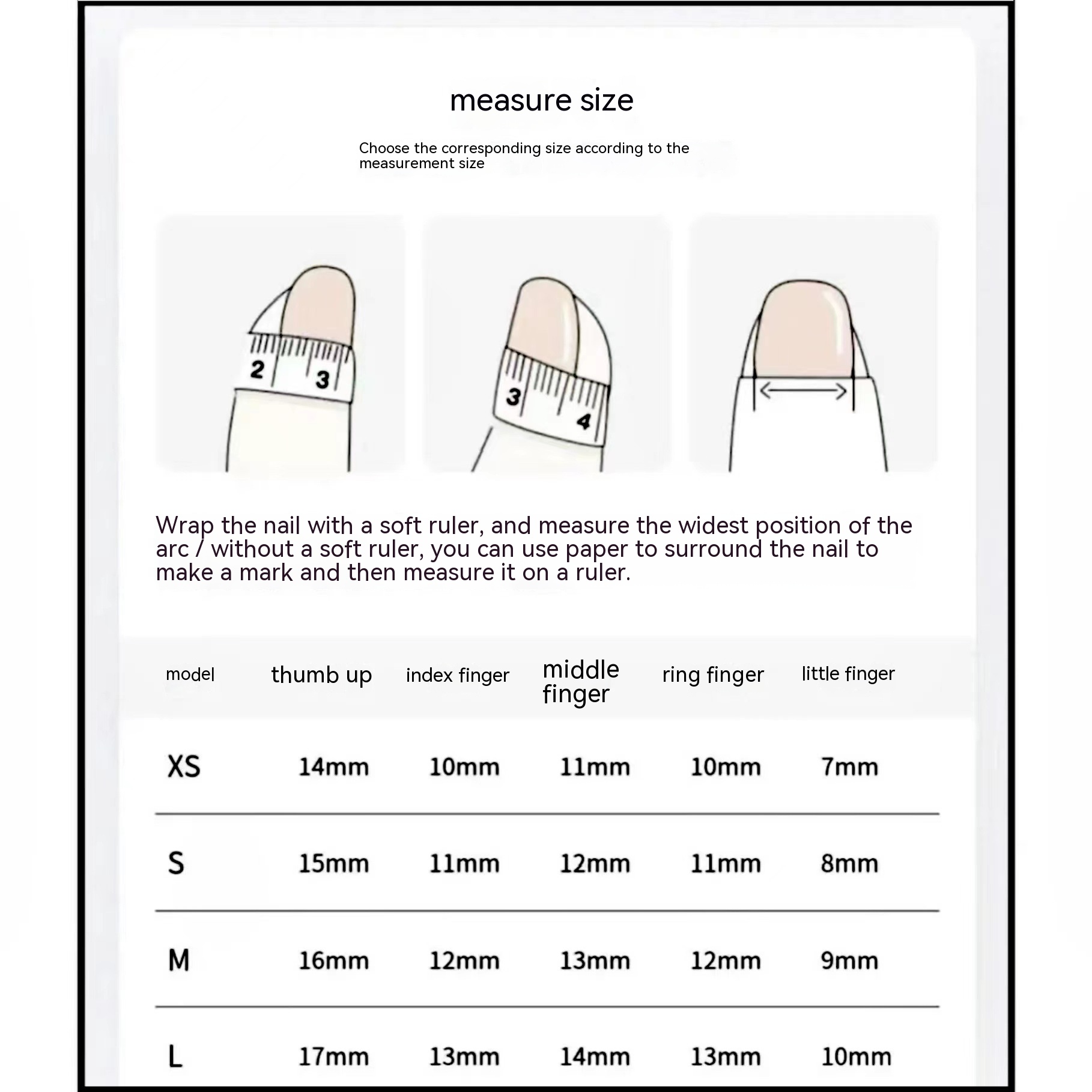 Color classification: extra small XS, small size S, medium M, large L