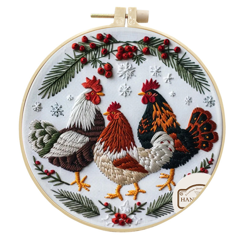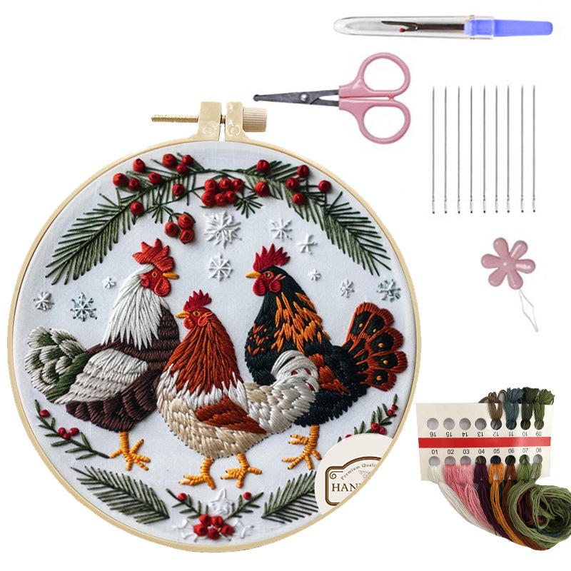 Color: 3 chickens (including 15cm bamboo embroidery frame, pink scissors, thread remover, and plum blossom threading device), 3 chicken material packs (excluding embroidery frame, pink scissors, thread remover, and plum blossom threading device)