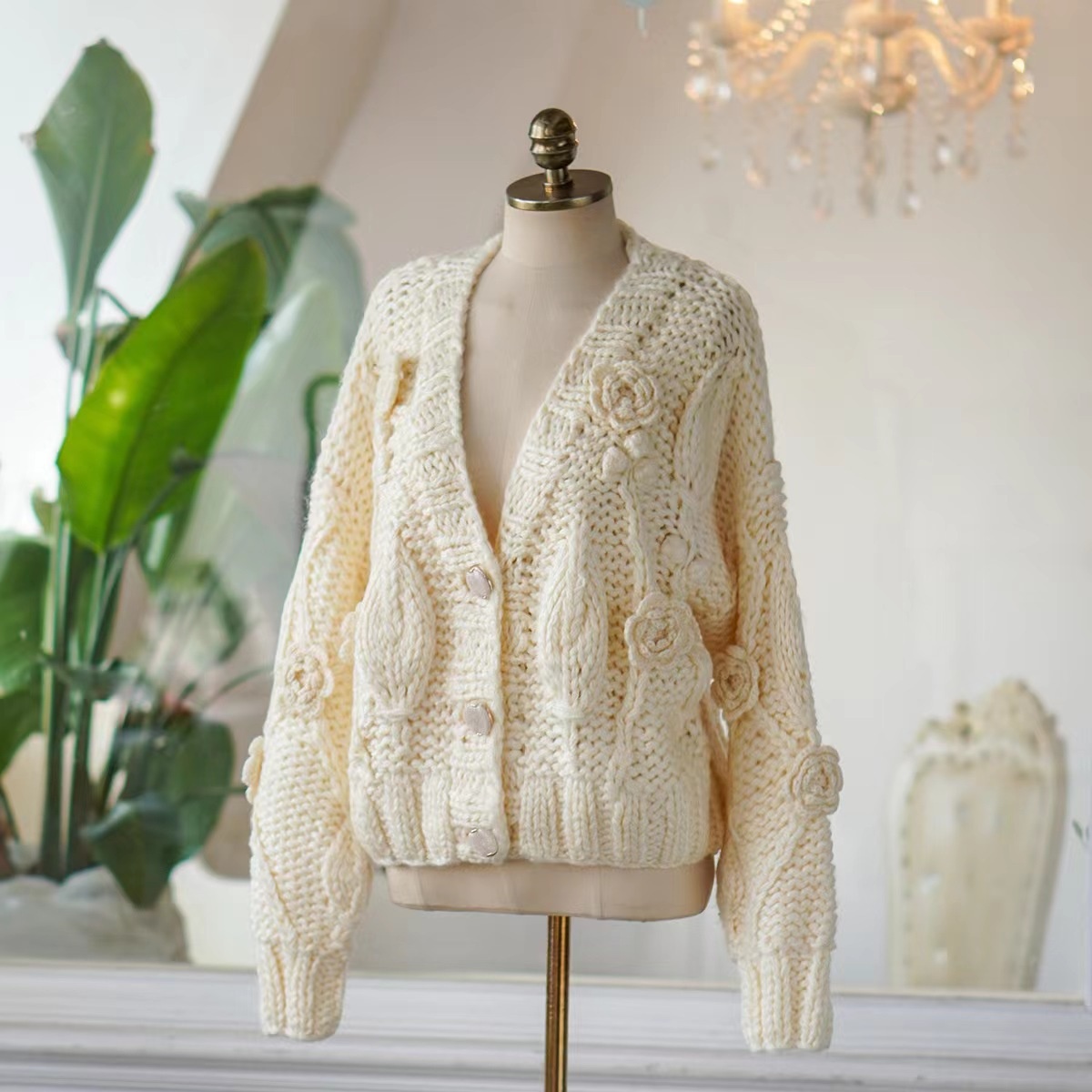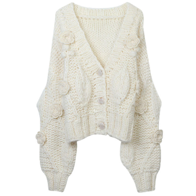 Handmade Crochet Batwing Sleeve V-neck Sweater