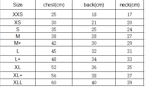 Sizes: XXS, XS, S, M, M+, L, L+, XL, XL+, XLL