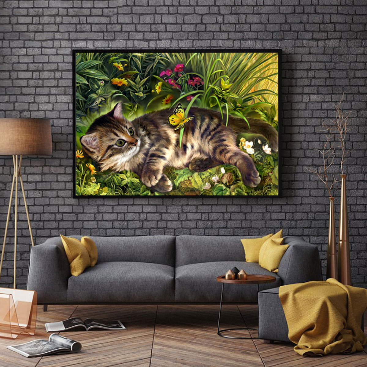 Handmade Diamond Painting Cross Stitch Lying Cat Home Decoration