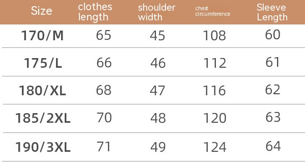 Size: 170/M,175/L,180/XL,185/2XL,190/3XL,195/4XL