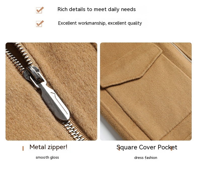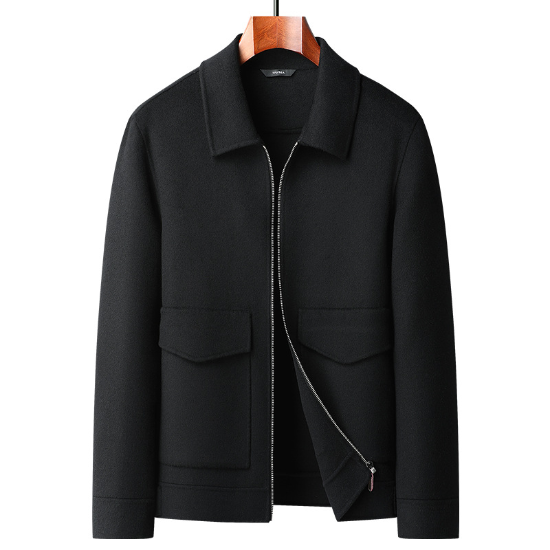 Handmade Double-faced Woolen Goods Jacket Lapel Zipper Coat