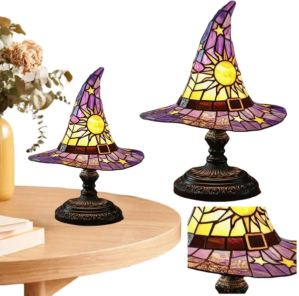 Handmade Gothic Witch Hat Night Light –Witch Hat Lamp Stained Glass LED Lamp, Spooky Halloween Decor, Indoor & Outdoor Witchcraft Gift, Unique Halloween Party Lighting