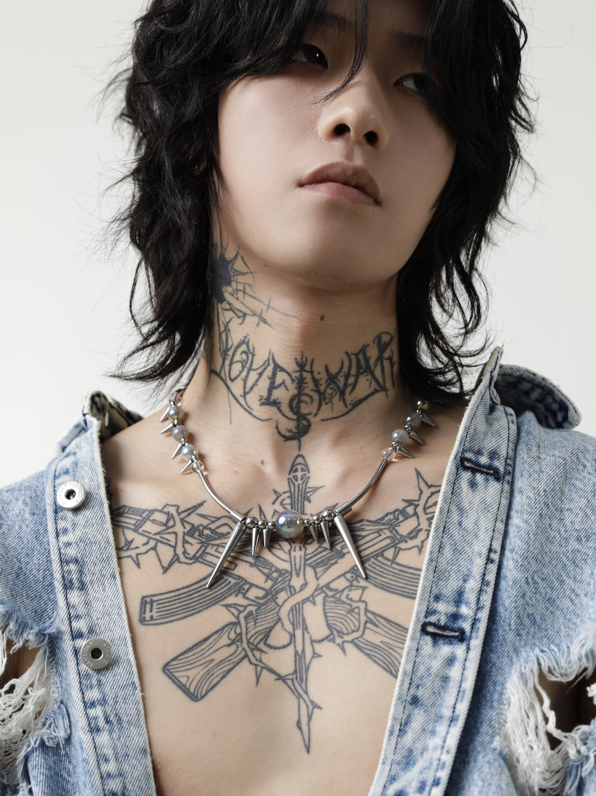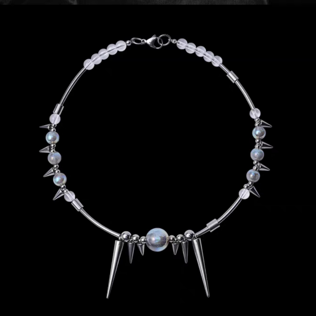 Handmade Heavy-Duty Beaded Necklace With Rivets