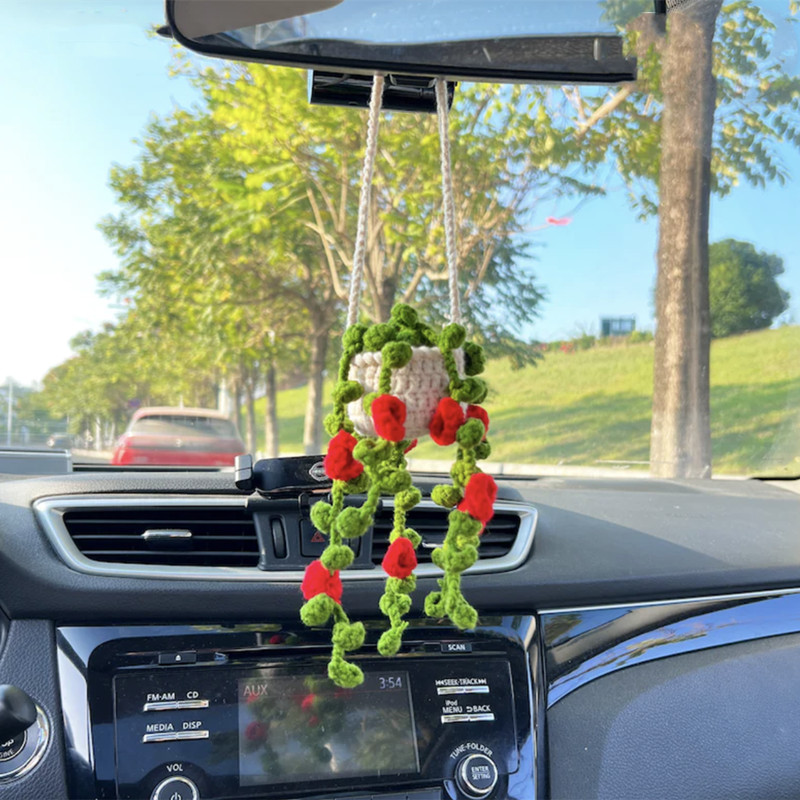 Handmade Knitted Flower Car Accessories Rearview Mirror