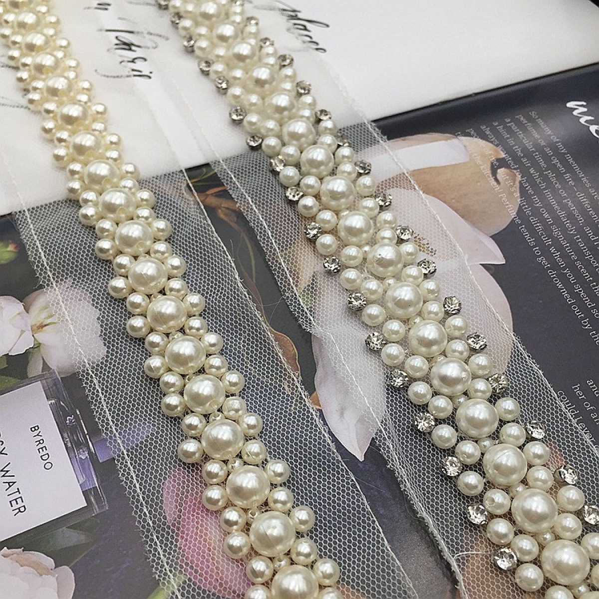 Product Number: large and small pearls plus glass drill beading lace