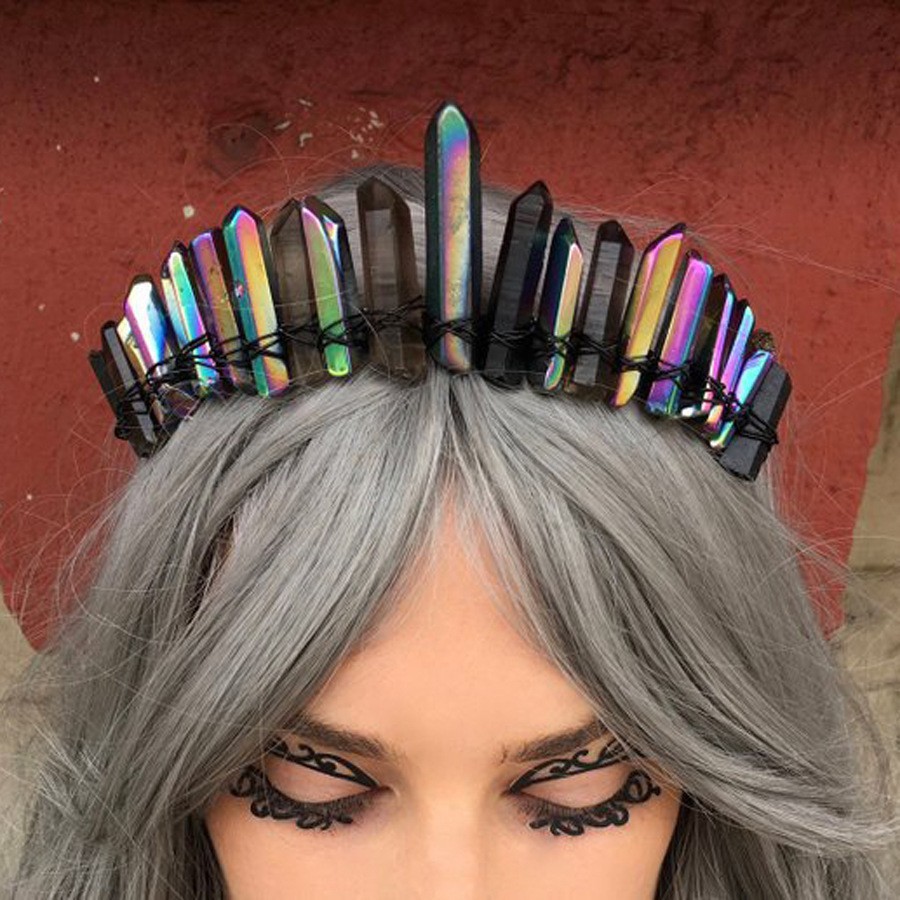 Handmade Natural Color Plated White Crystal Crown