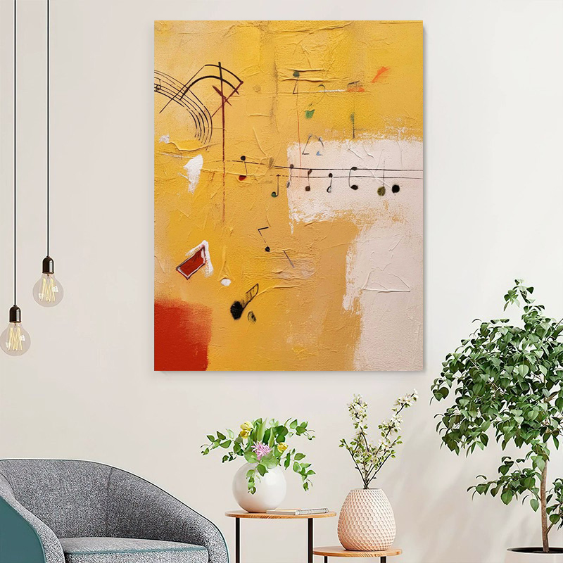 Handmade Oil Painting Canvas Wall Art Decoration Musical Theme Orange Abstract Painting For Home Living Room Decor Rolled Frameless Unstretched Painting