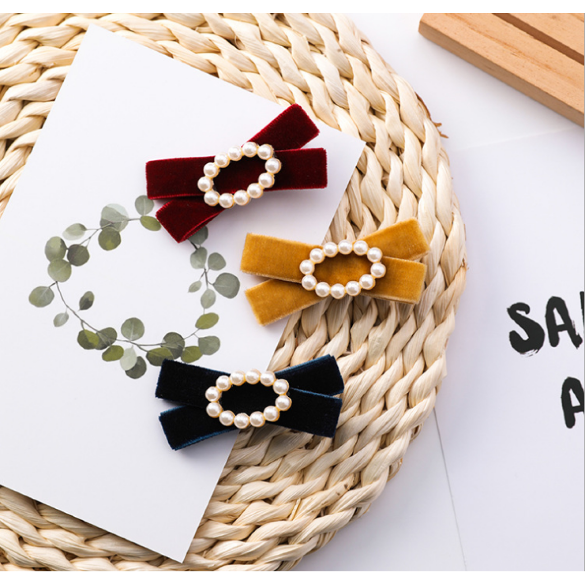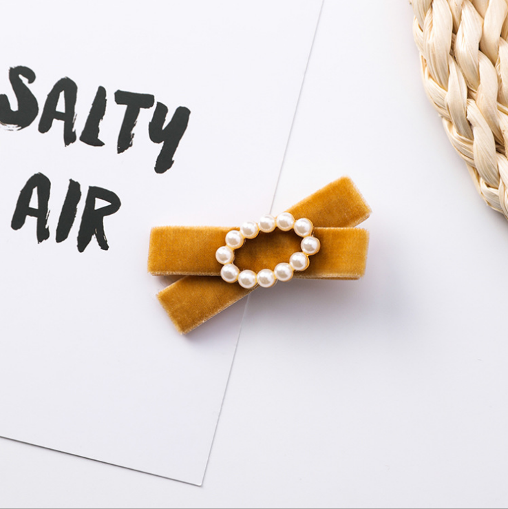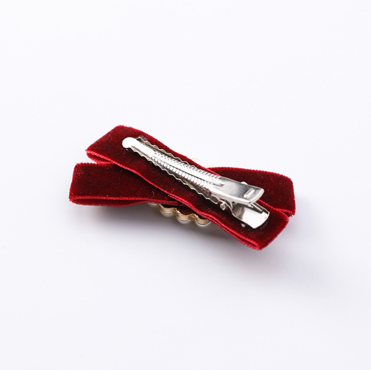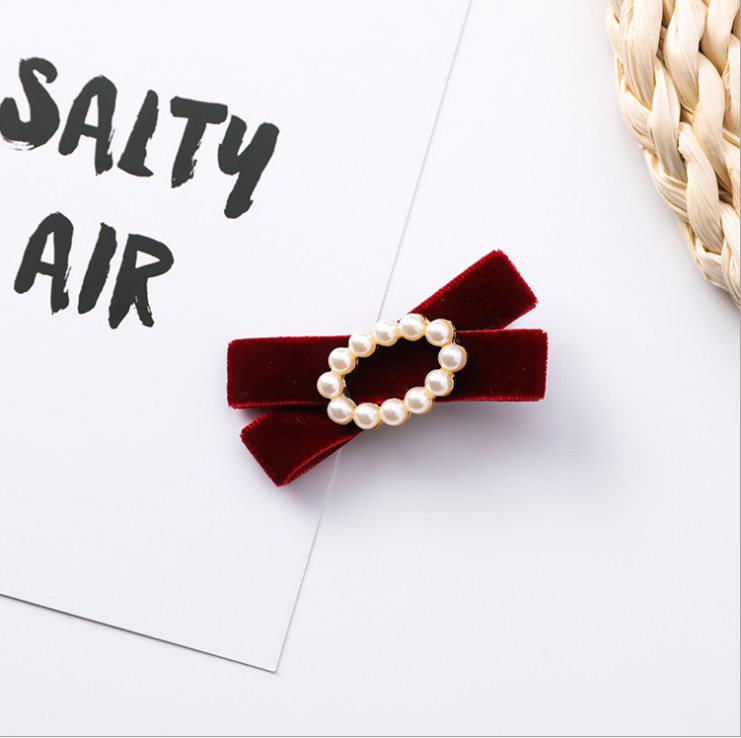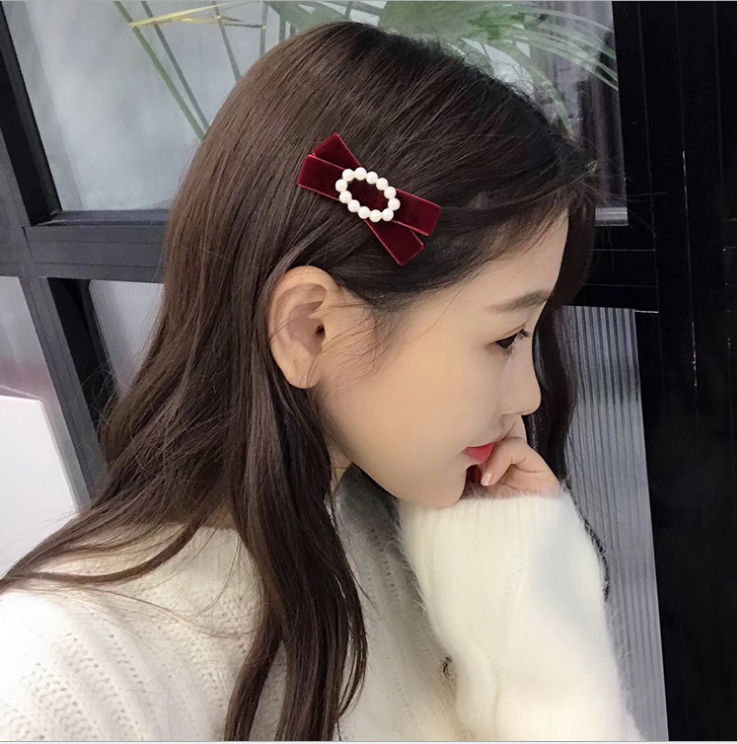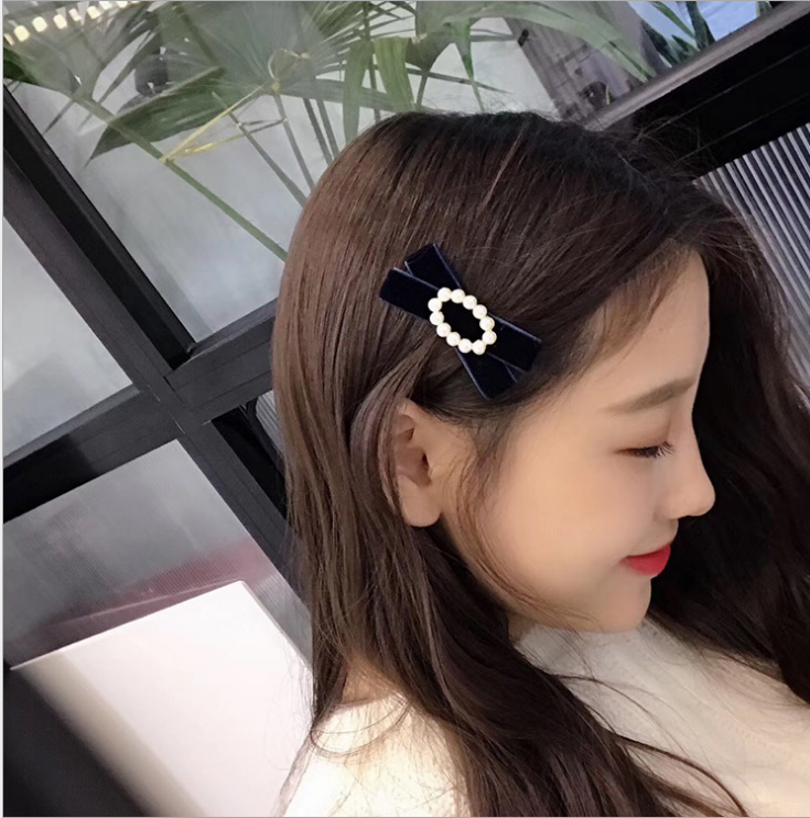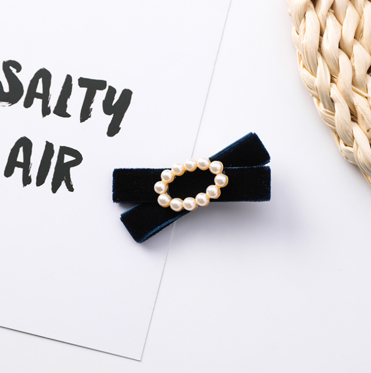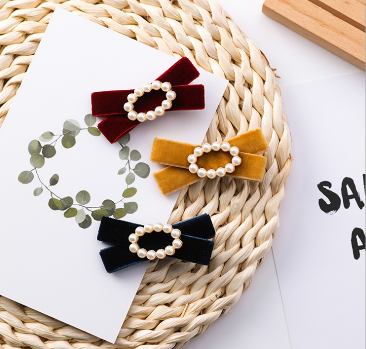 Handmade pearl velvet bow hairpin autumn and winter retro sweet wild duck mouth clip side clip female