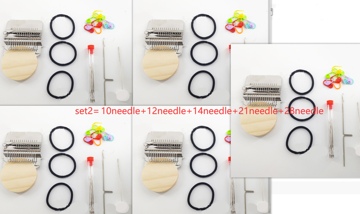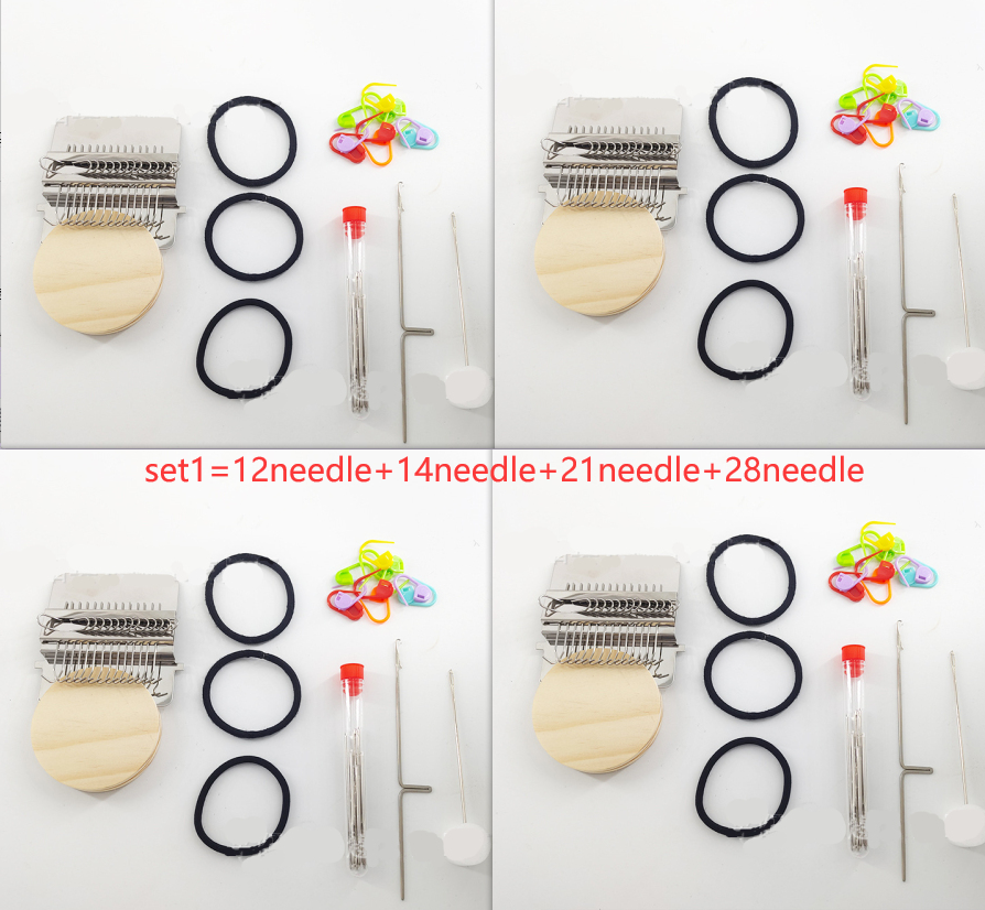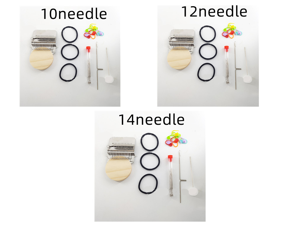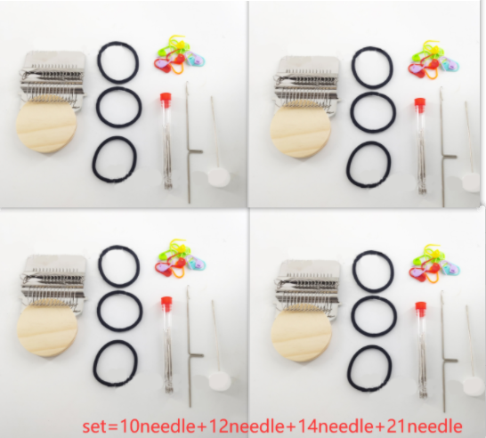 Round wooden handle *1 machine *1 crochet needle *1 sewing needle *1 rubber band *1 instruction *1
