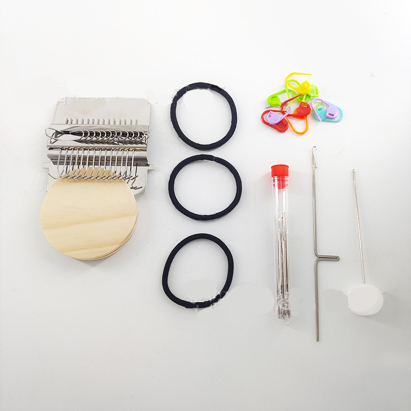 Material: Round wooden handle + machine + crochet needle + sewing needle + rubber band + instruction manual