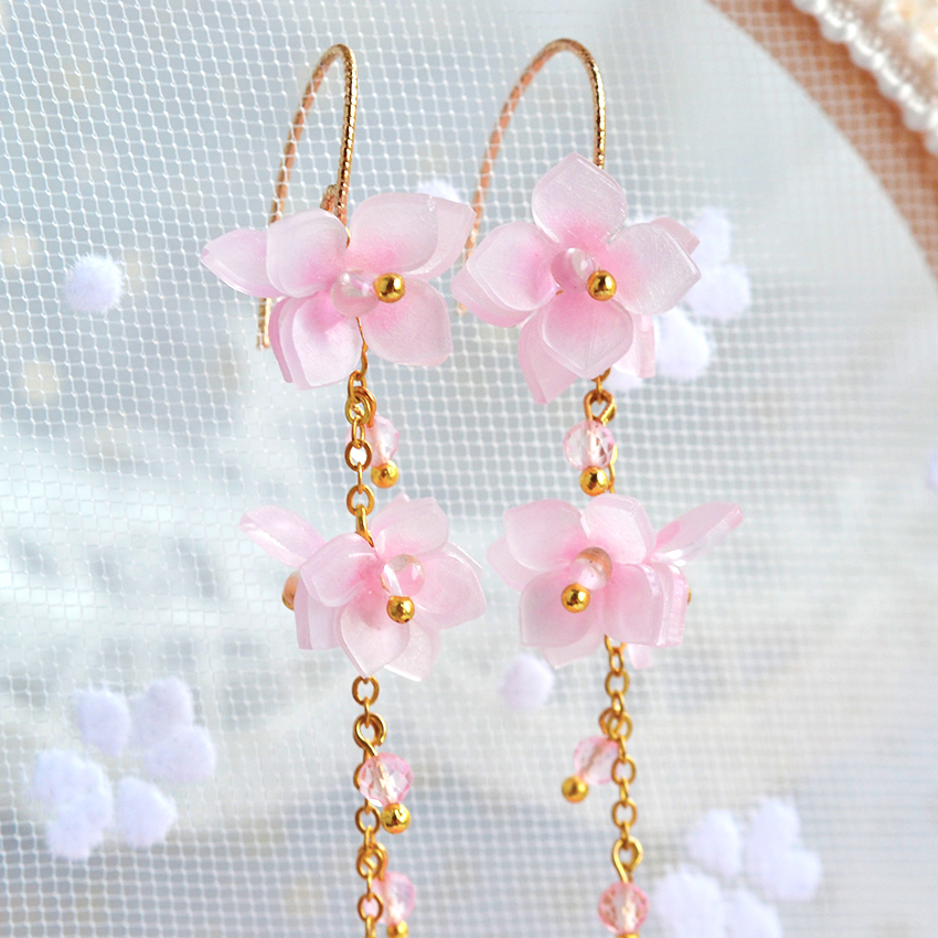 Color: Light pink ear hook, blue and purple ear hook, light pink ear clip, blue and purple ear clip, cherry blossom ear hook, cherry blossom ear clip