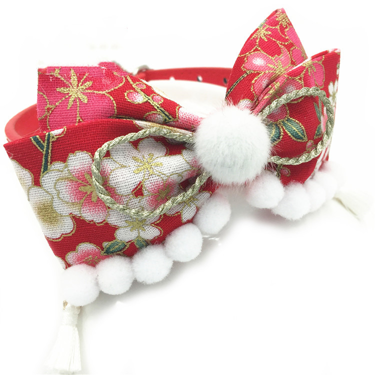 Handmade red Chinese New Year and festive Christmas pet cat and dog collar jewelry bow