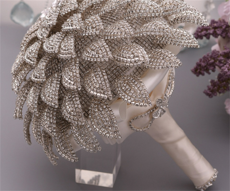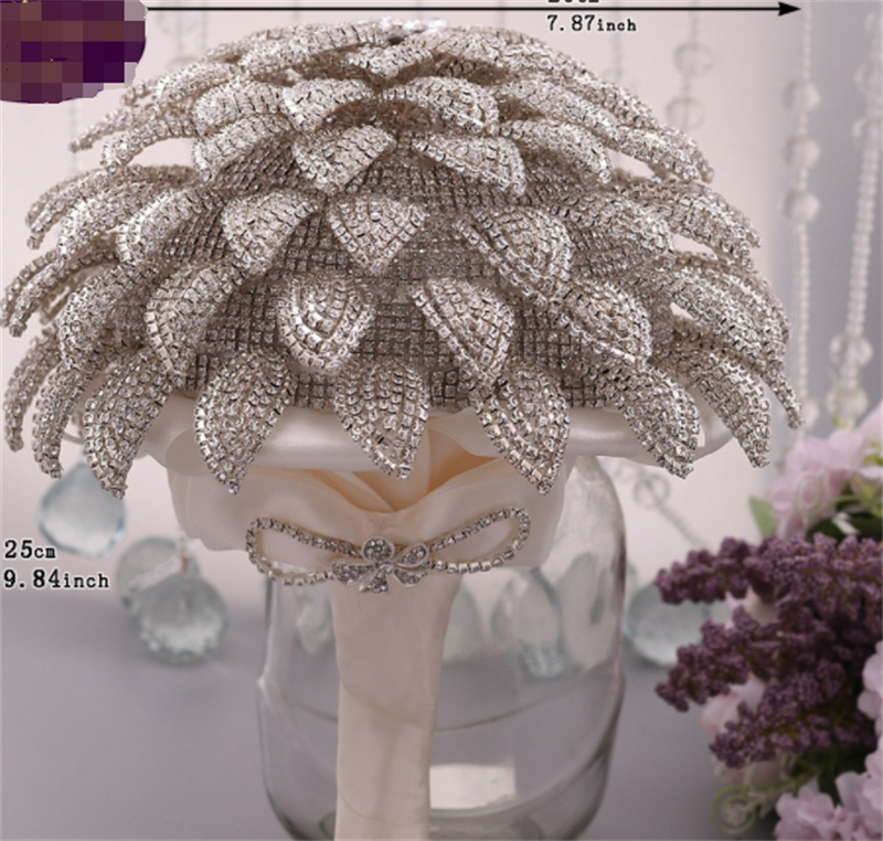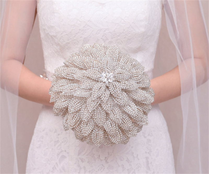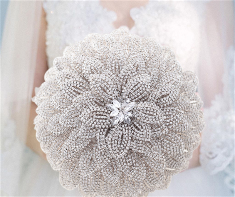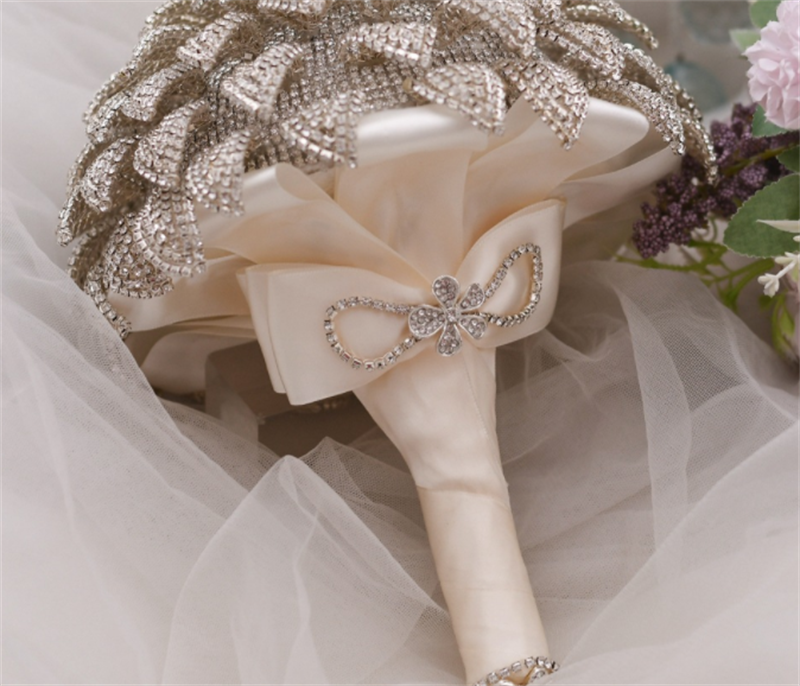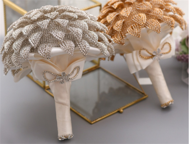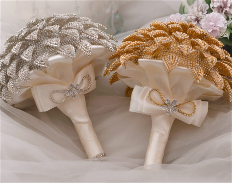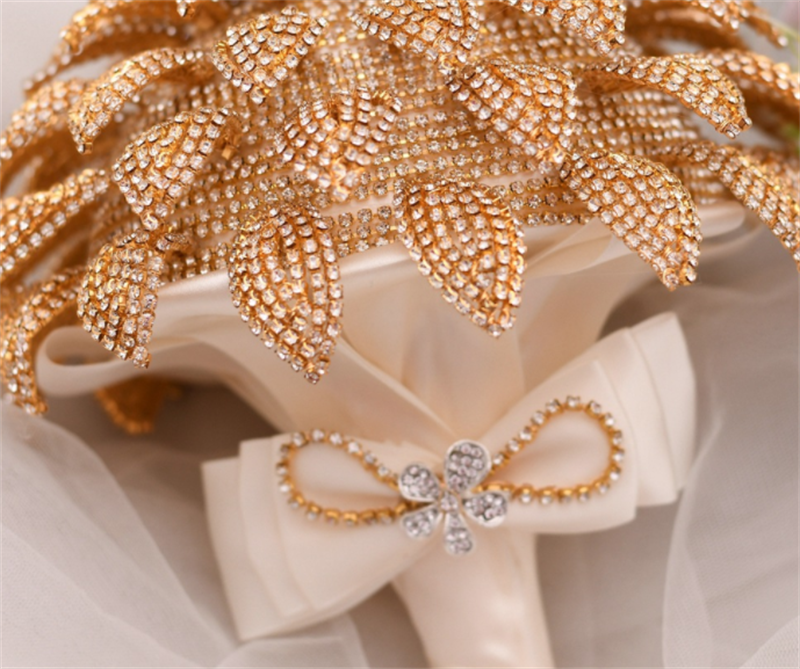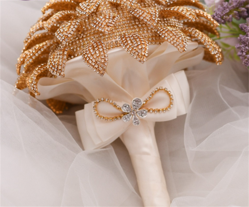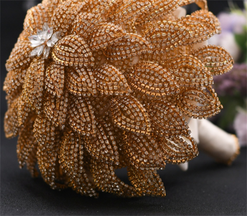 Handmade Rhinestone Gold Handheld Flower Bridal Wedding Bouquet