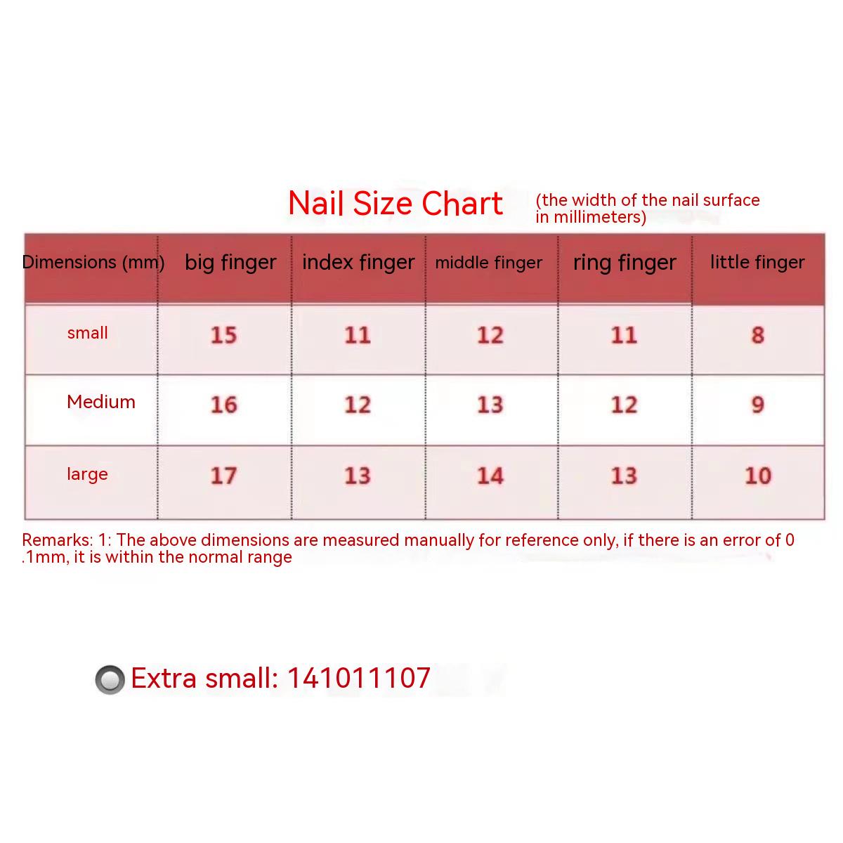 Specifications: ultra-small XS, small size S, medium M, large L