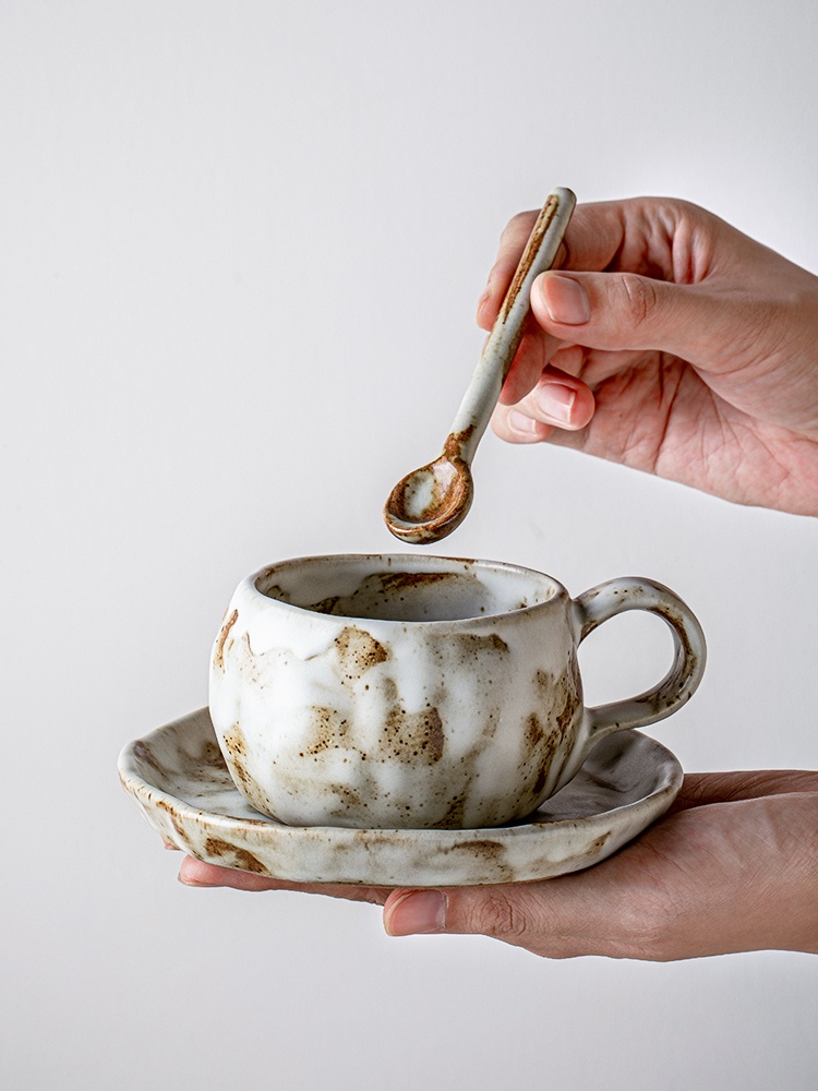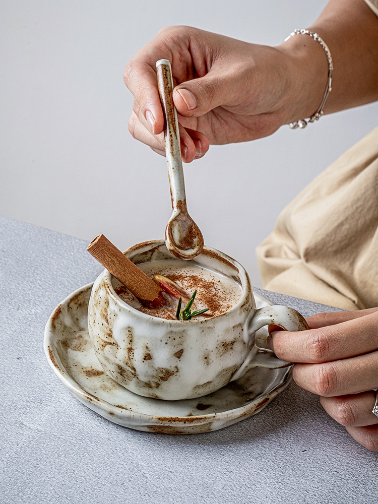 Color classification: macchiato-stoneware coffee set suit with spoon
