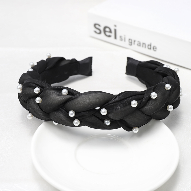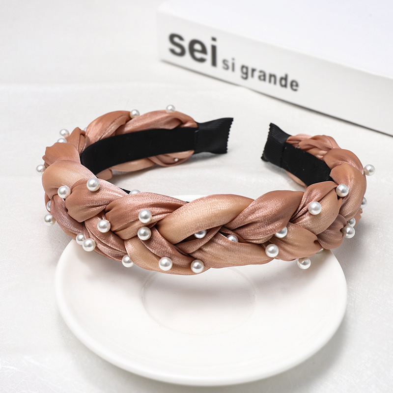 Color: dark green twist fabric + nailed pearl headband, pink twist fabric + nailed pearl hairband, mint green twisted fabric + nailed pearl hairband, yellow twisted fabric + nailed pearl hairband, army green twisted fabric + nailed pearl hairband, Black Twist Fabric + Nail Pearl Hairband, Light Blue Twist Fabric + Nail Pearl Hairband
