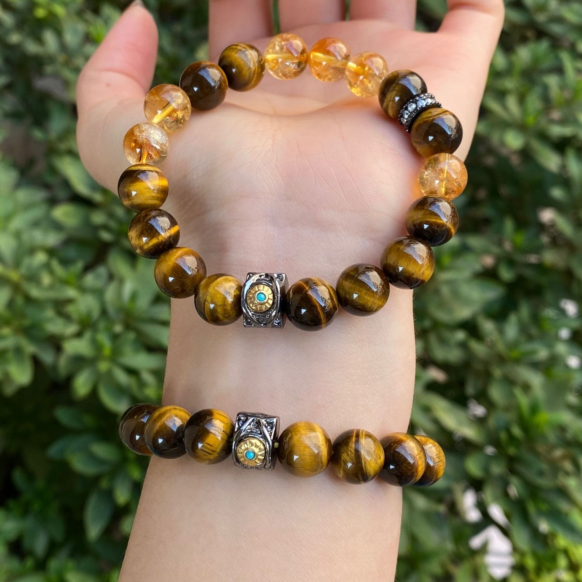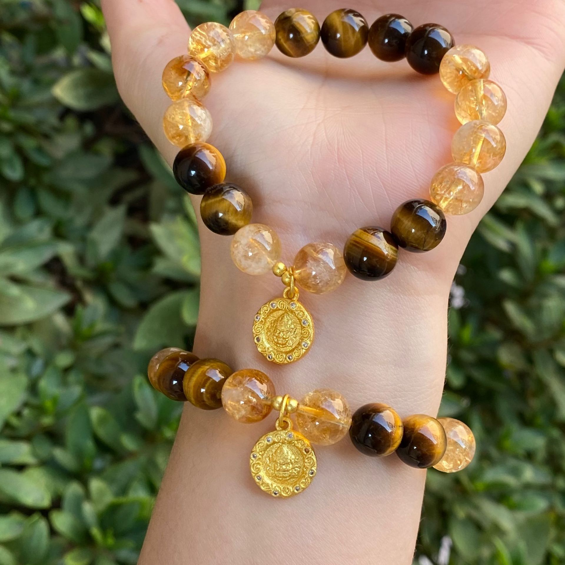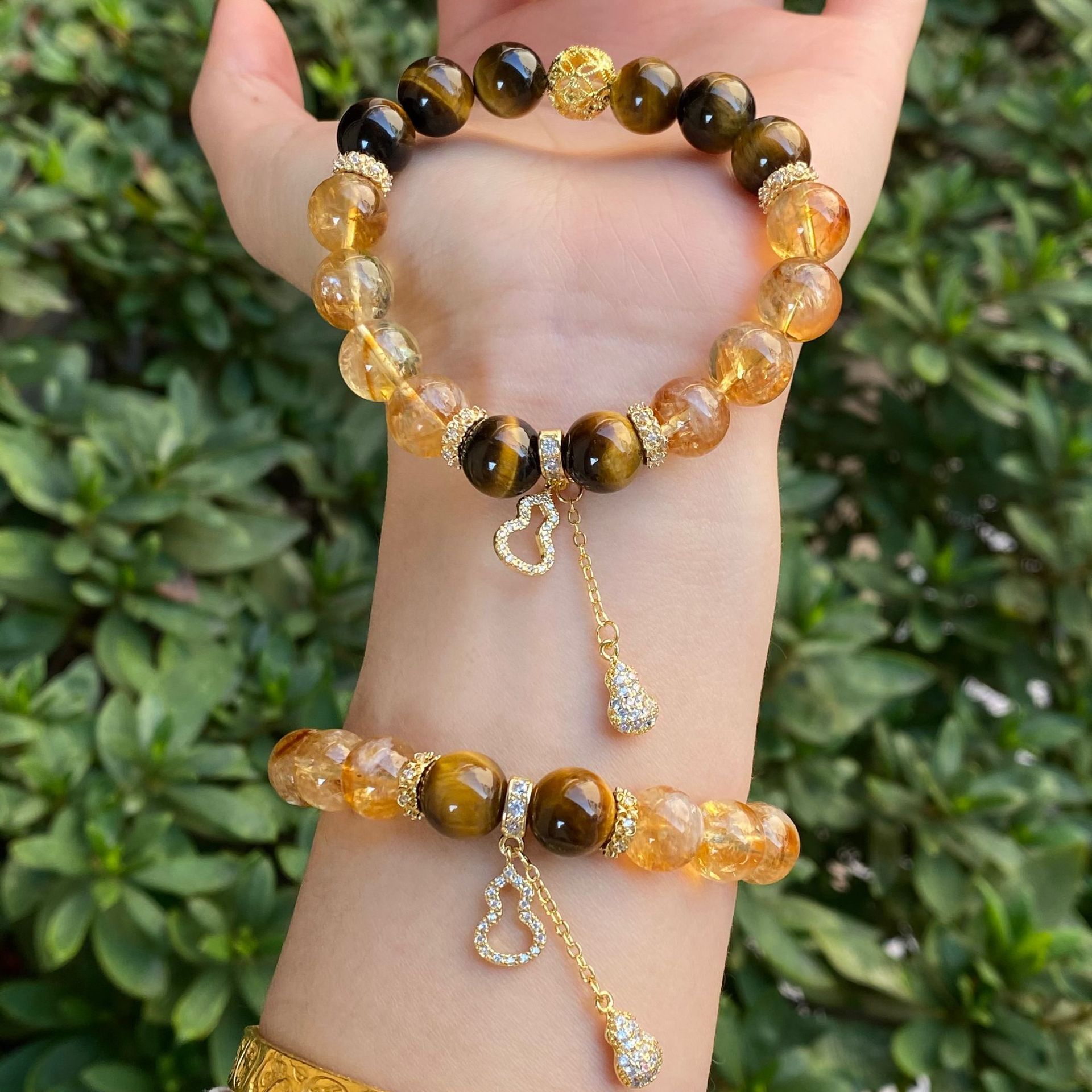 Handmade Unisex Citrine Diamond Gourd Bracelet