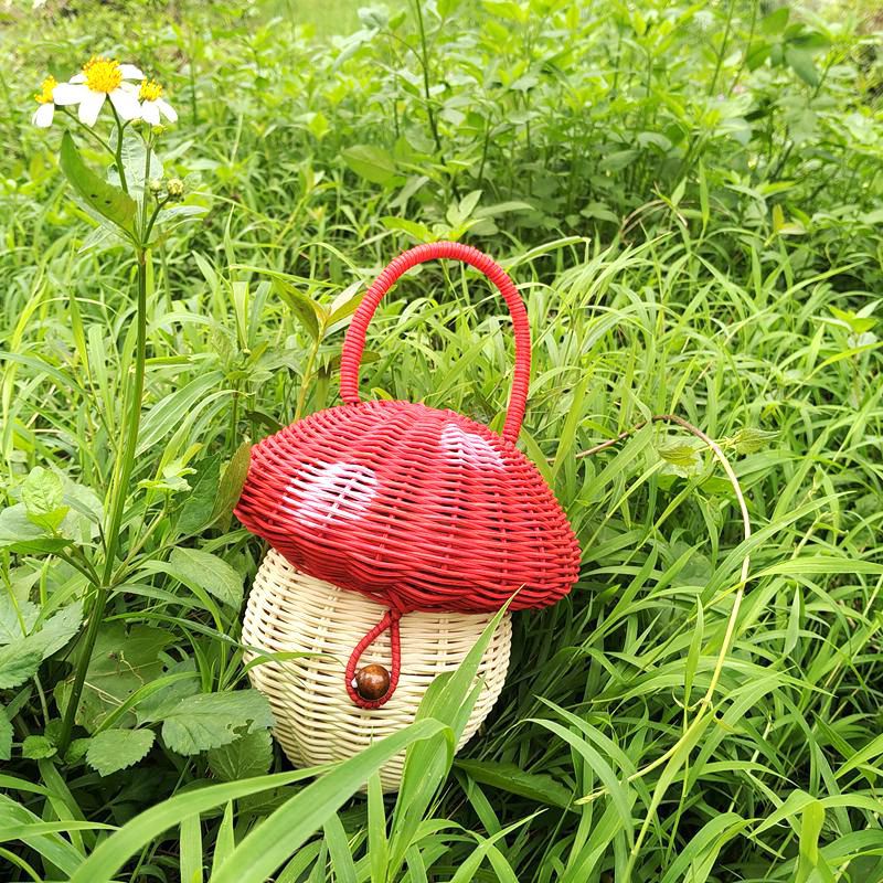 Product information:Material: Rattan Size: portable mushroom bag Style: Pastoral Category: Handbag Size: 18 * 25cm