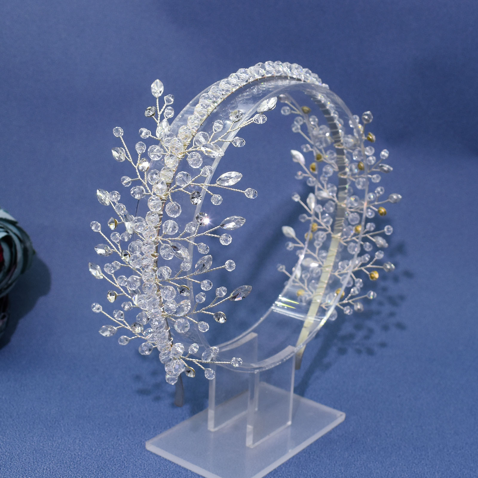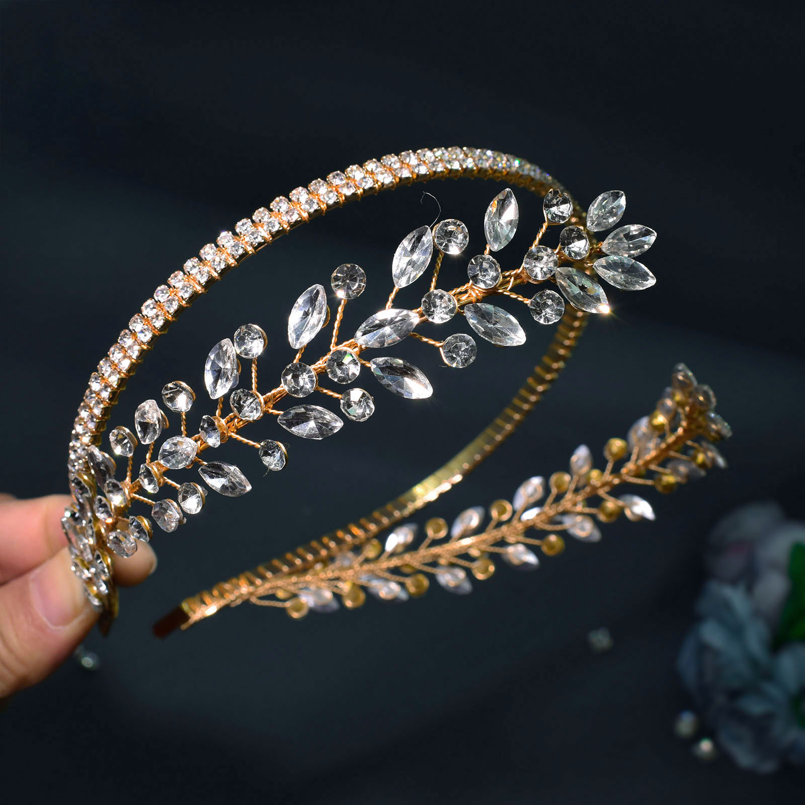 Features: Handmade twisted thread, soft and flexible, convenient for styling and wearing, exquisite rhinestone flowers, bridal wedding dress with hair accessories and headbands