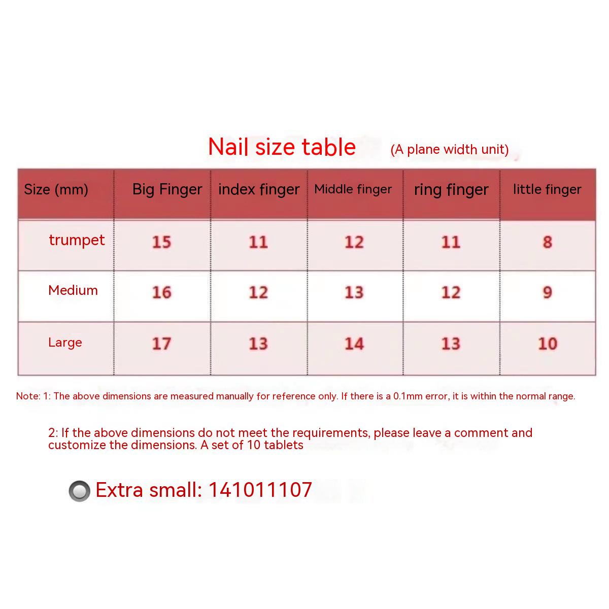 Color: extra small XS [including five sets], small size S [including five sets], medium M [including five sets], large L [including five sets]]