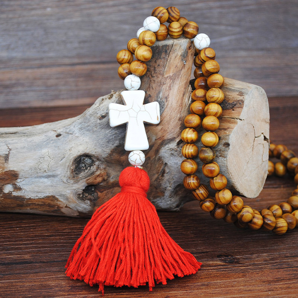 Material: Wood Bead + Crystal + pine stone + cotton thread tassel