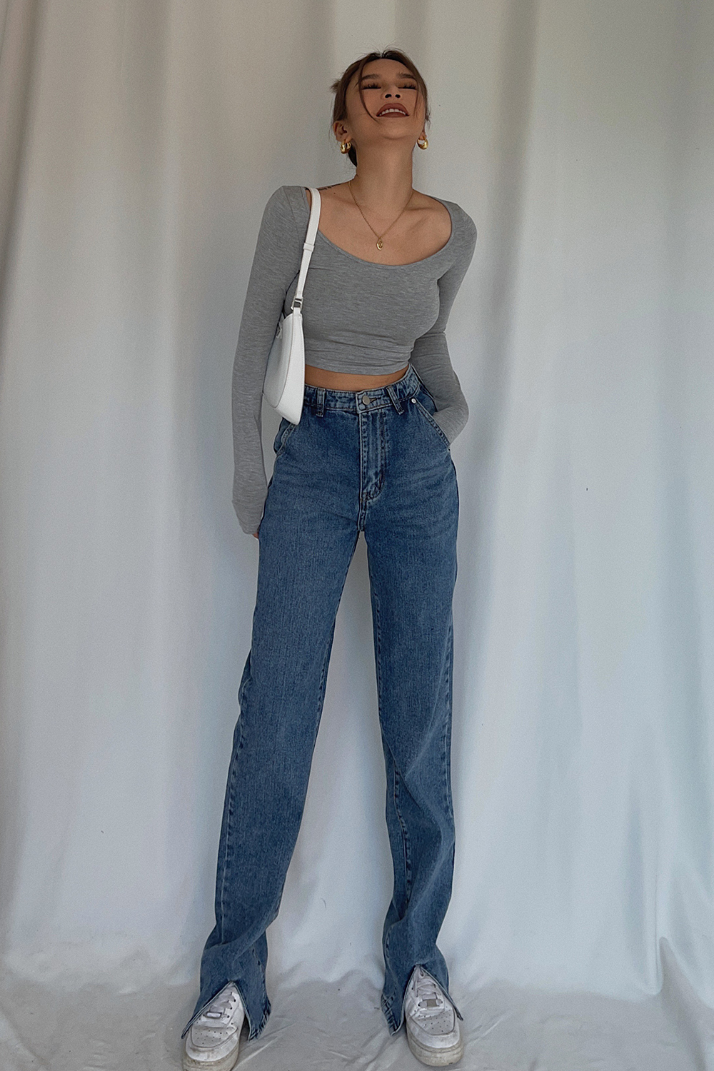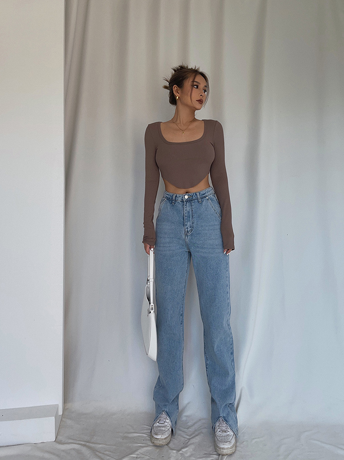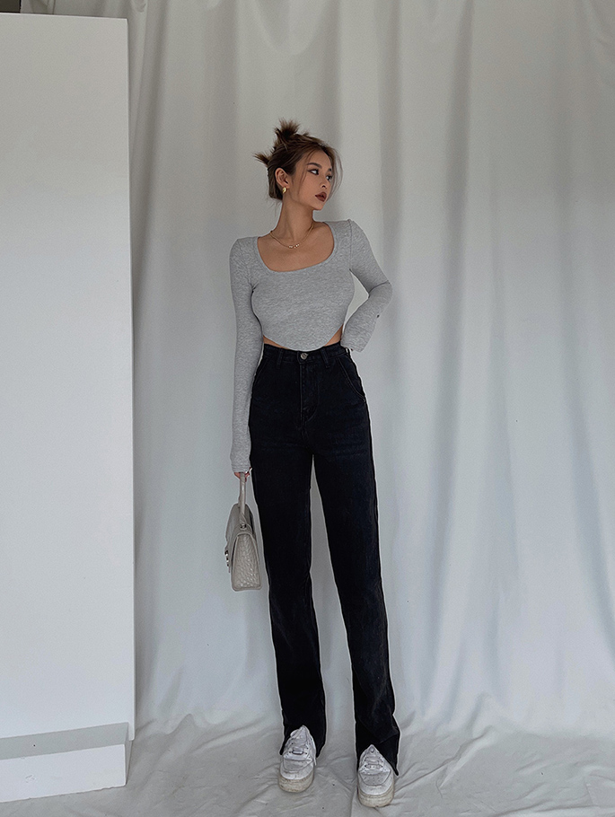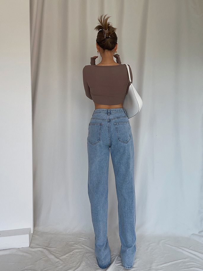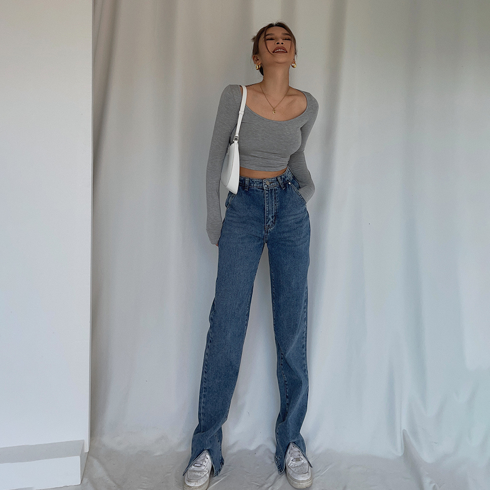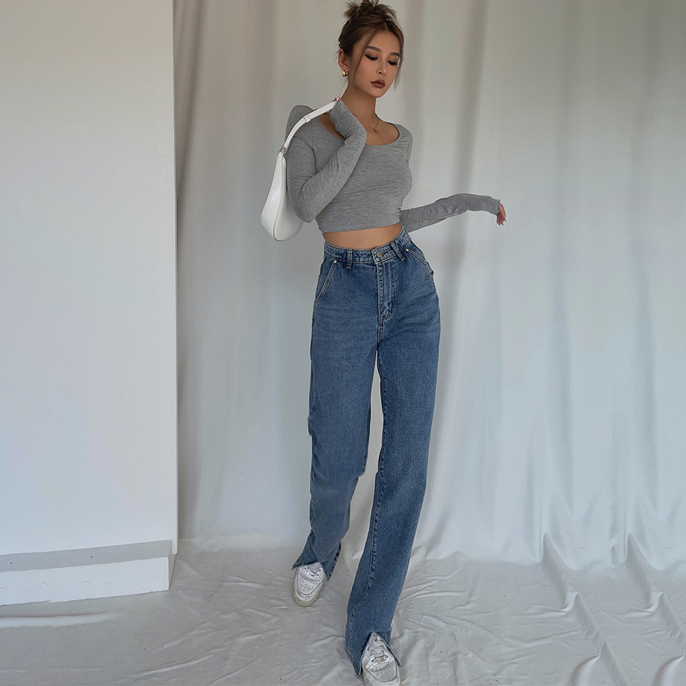 Handsome Cool Stylish Front Slit High Waist Jeans Mop