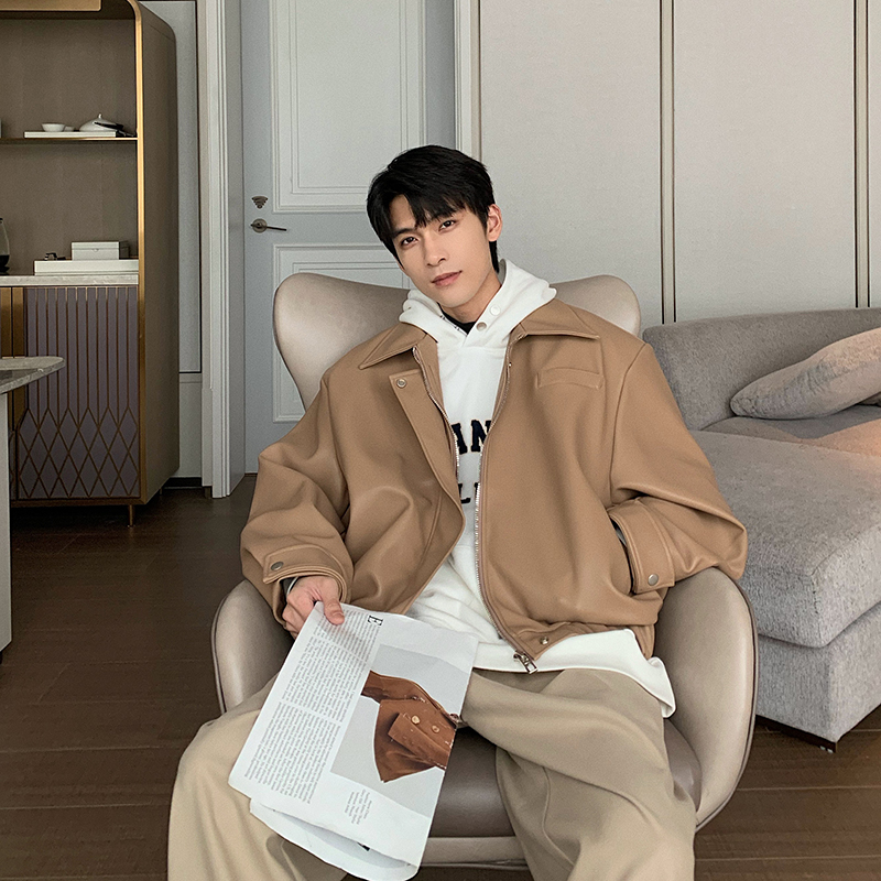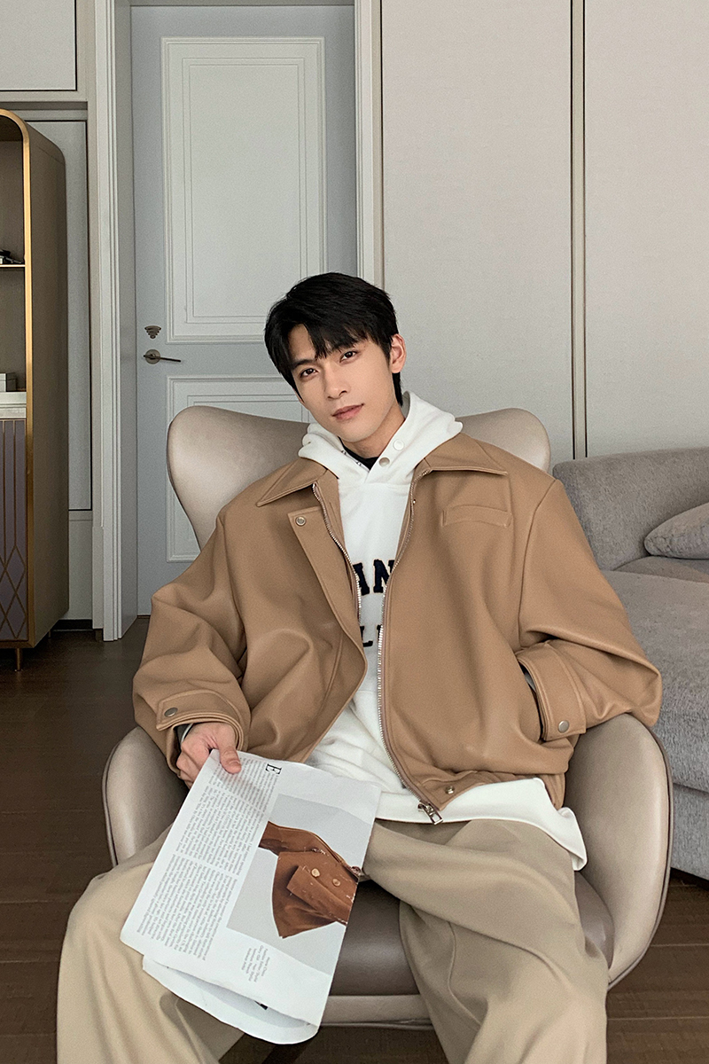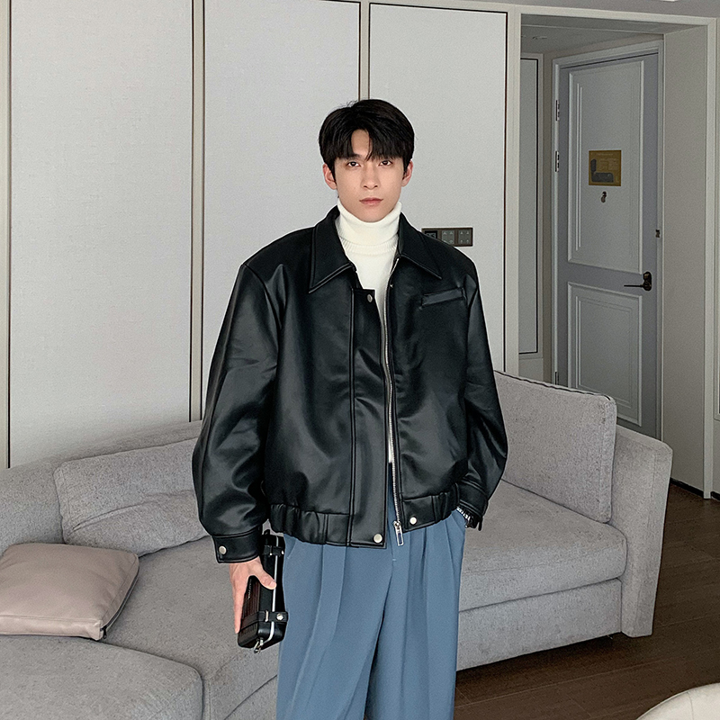 Features:Faux leather leather jacket