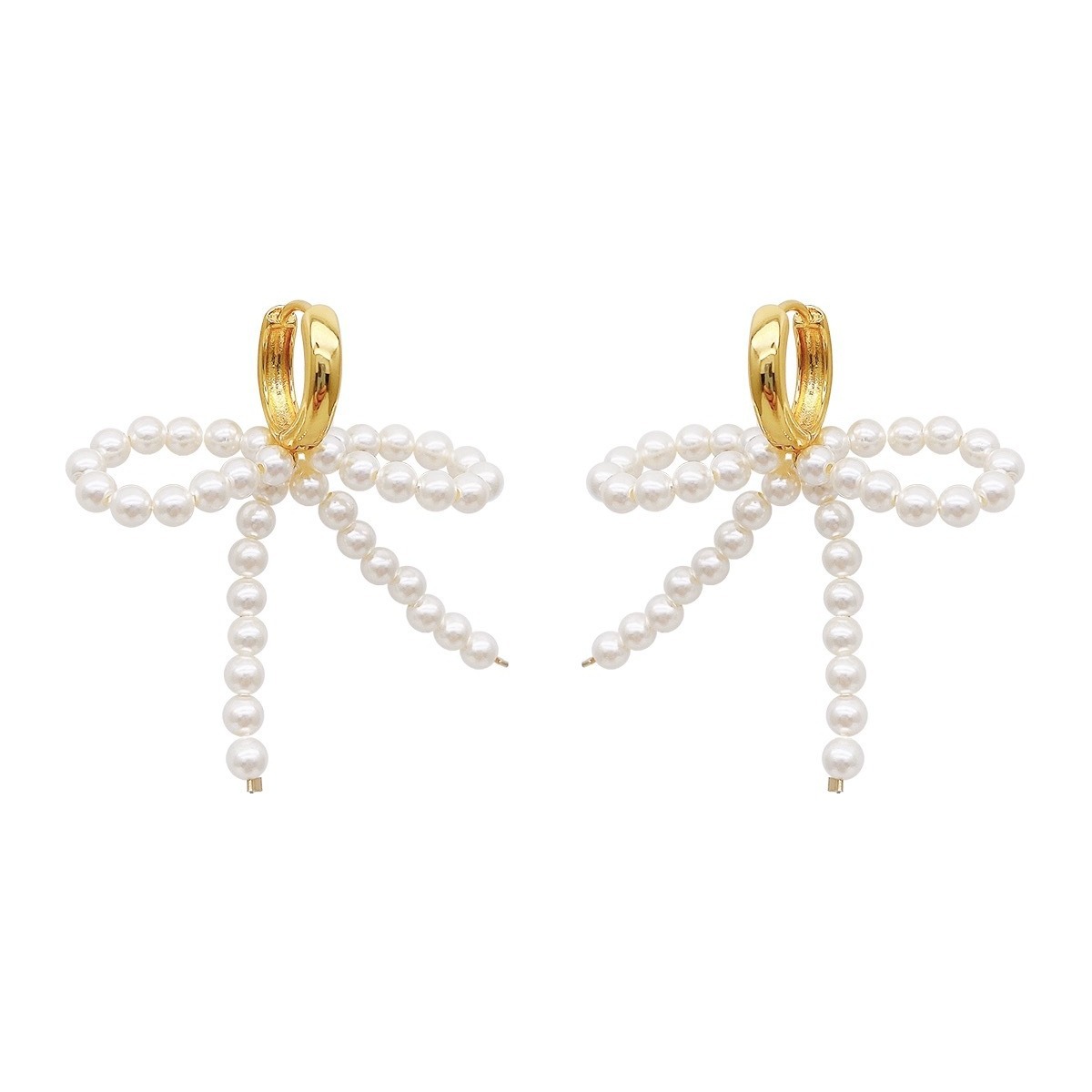 Color: Bow Pearl Ear Clips, Pearl Bow Stud Earrings